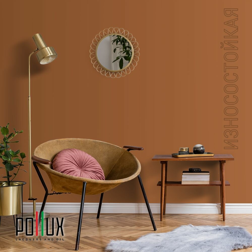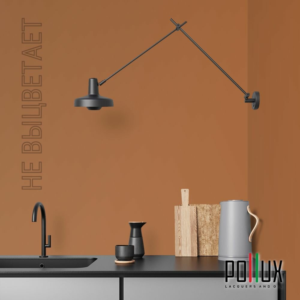 Краска моющаяся интерьерная для стен и потолков, Pollux INTERIOR без запаха, быстросохнущая, акриловая, матовое покрытие, цвет NCS S 3030-Y40R, 1л.