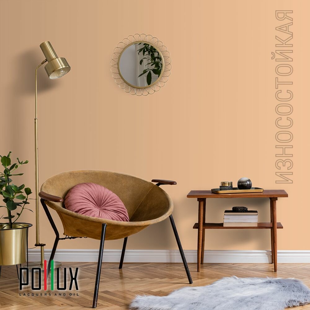 Краска моющаяся интерьерная для стен и потолков, Pollux INTERIOR без запаха, быстросохнущая, акриловая, матовое покрытие, цвет NCS S 0585-Y40R, 1л.
