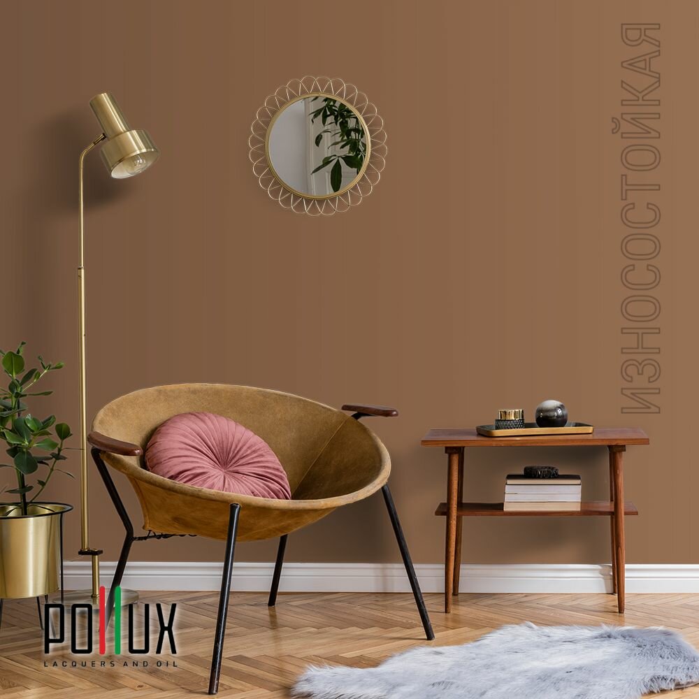 Краска моющаяся интерьерная для стен и потолков, Pollux INTERIOR без запаха, быстросохнущая, акриловая, матовое покрытие, цвет NCS S 3030-Y40R, 1л.