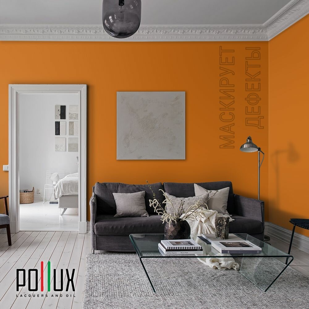 Краска моющаяся интерьерная для стен и потолков, Pollux INTERIOR без запаха, быстросохнущая, акриловая, матовое покрытие, цвет NCS S 3030-Y40R, 1л.
