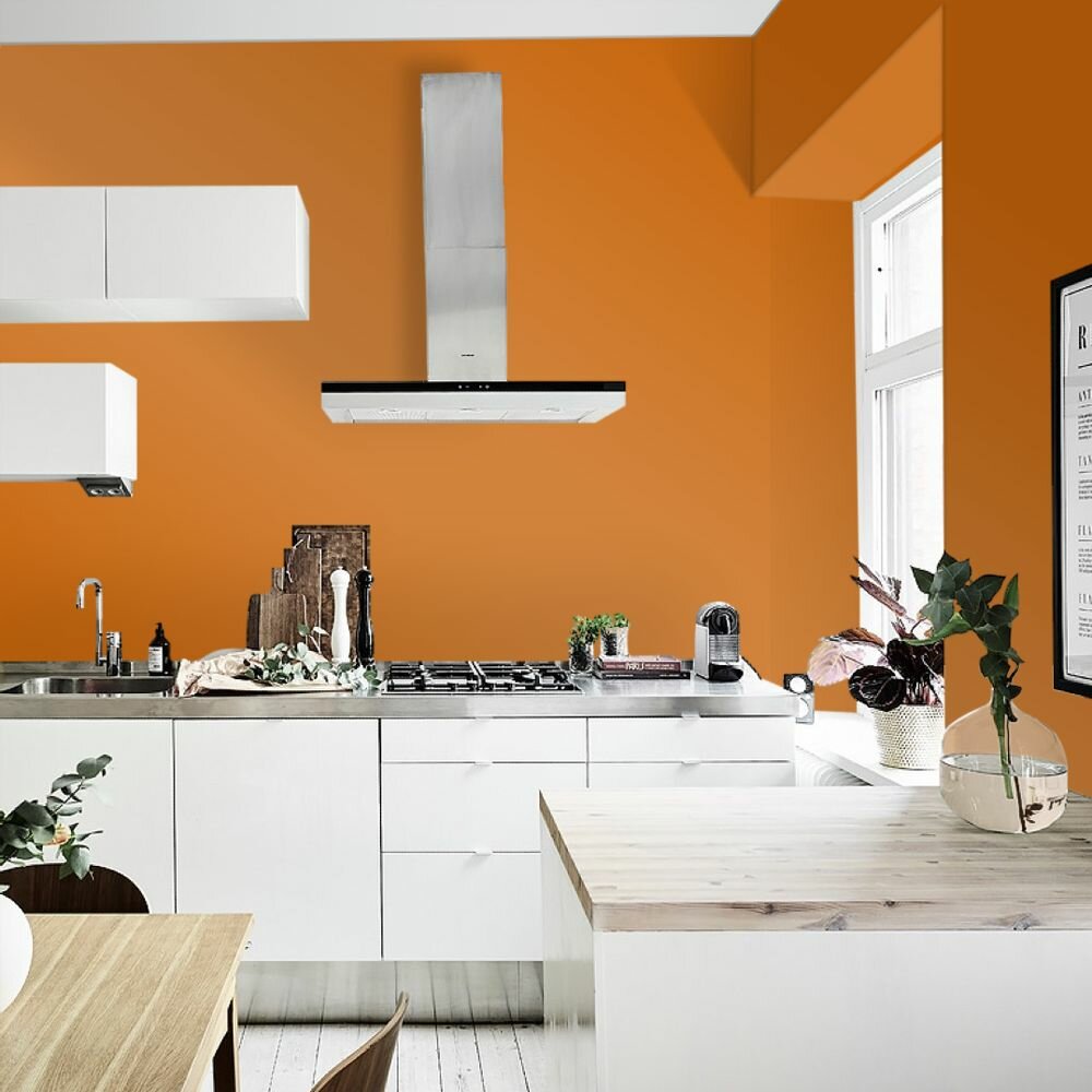 Краска моющаяся интерьерная для стен и потолков, Pollux INTERIOR без запаха, быстросохнущая, акриловая, матовое покрытие, цвет NCS S 3060-Y40R, 1л.