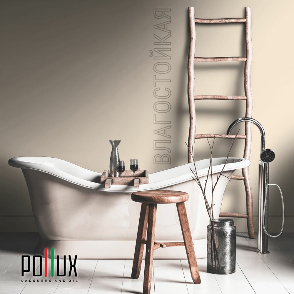 Краска моющаяся интерьерная для стен и потолков, Pollux INTERIOR без запаха, быстросохнущая, акриловая, матовое покрытие, цвет NCS S 7020-Y40R, 1л.