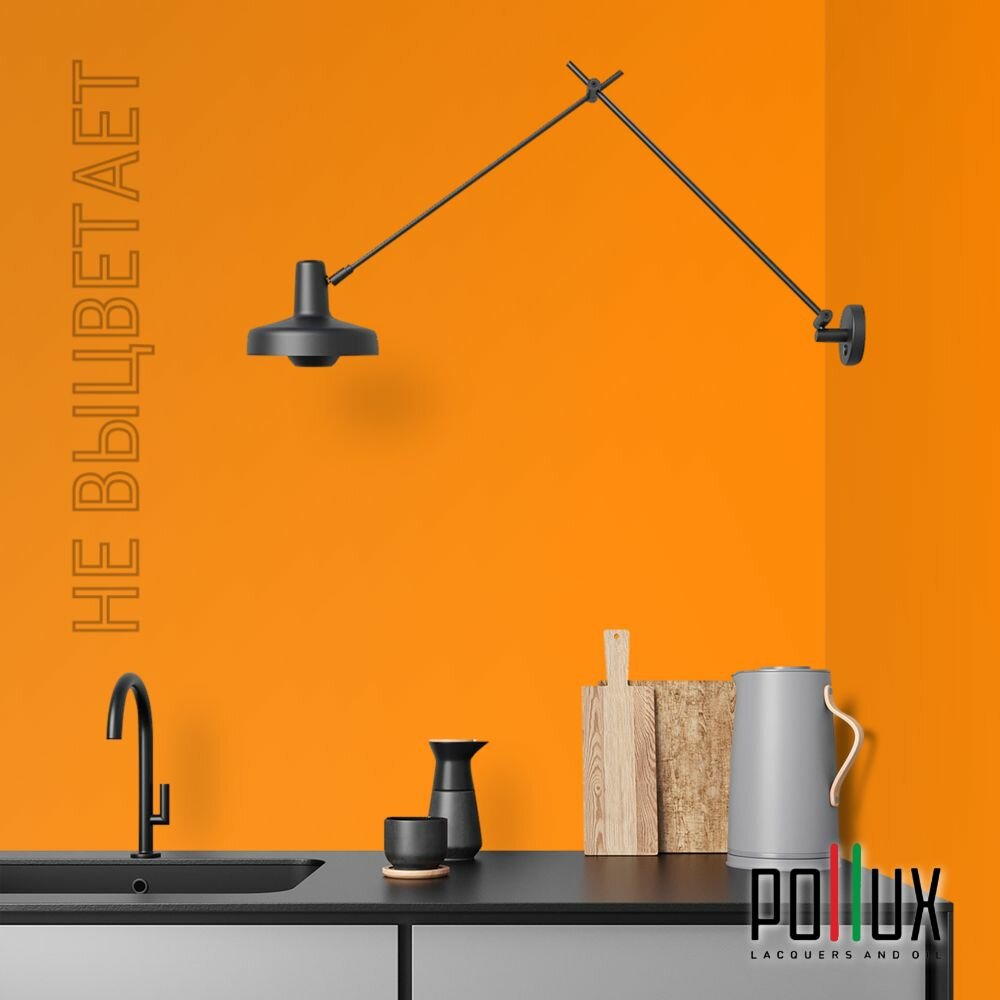 Краска моющаяся интерьерная для стен и потолков, Pollux INTERIOR без запаха, быстросохнущая, акриловая, матовое покрытие, цвет NCS S 1080-Y40R, 1л.