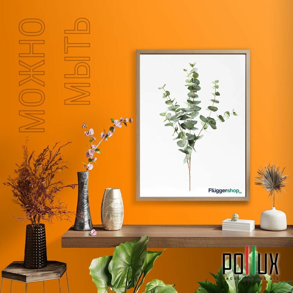 Краска моющаяся интерьерная для стен и потолков, Pollux INTERIOR без запаха, быстросохнущая, акриловая, матовое покрытие, цвет NCS S 3060-Y40R, 1л.