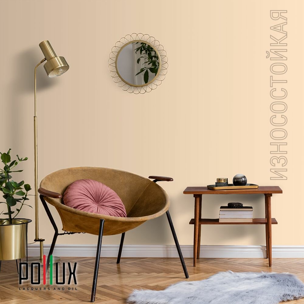 Краска моющаяся интерьерная для стен и потолков, Pollux INTERIOR без запаха, быстросохнущая, акриловая, матовое покрытие, цвет NCS S 0510-Y40R, 1л.