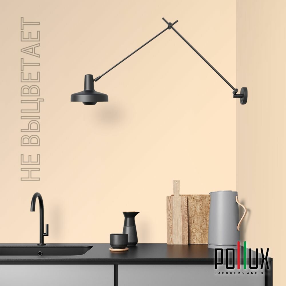 Краска моющаяся интерьерная для стен и потолков, Pollux INTERIOR без запаха, быстросохнущая, акриловая, матовое покрытие, цвет NCS S 1505-Y40R, 1л.