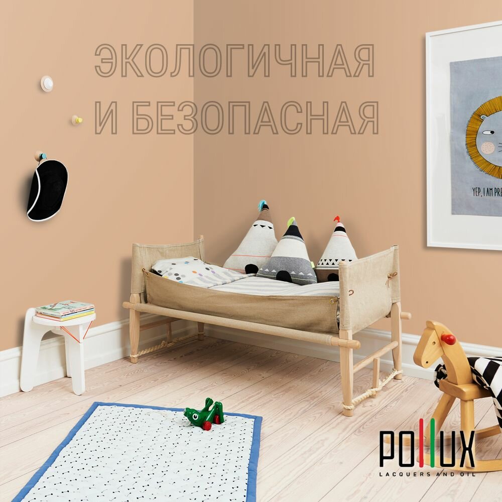 Краска моющаяся интерьерная для стен и потолков, Pollux INTERIOR без запаха, быстросохнущая, акриловая, матовое покрытие, цвет NCS S 3030-Y40R, 1л.
