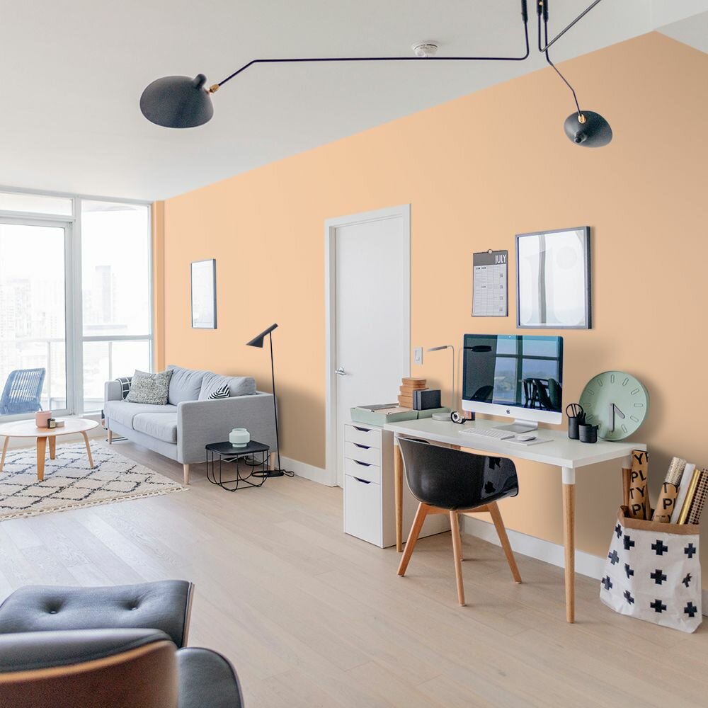 Краска моющаяся интерьерная для стен и потолков, Pollux INTERIOR без запаха, быстросохнущая, акриловая, матовое покрытие, цвет NCS S 0585-Y40R, 1л.