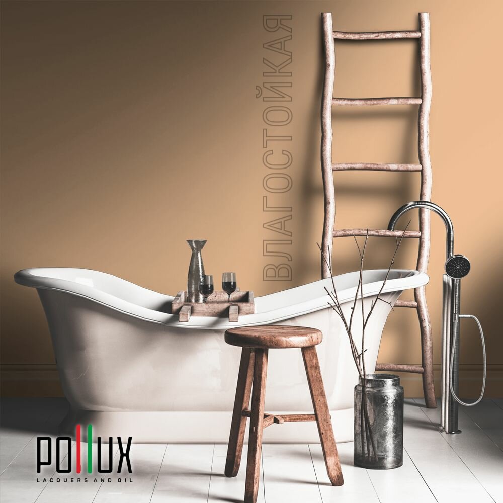 Краска моющаяся интерьерная для стен и потолков, Pollux INTERIOR без запаха, быстросохнущая, акриловая, матовое покрытие, цвет NCS S 2570-Y40R, 1л.