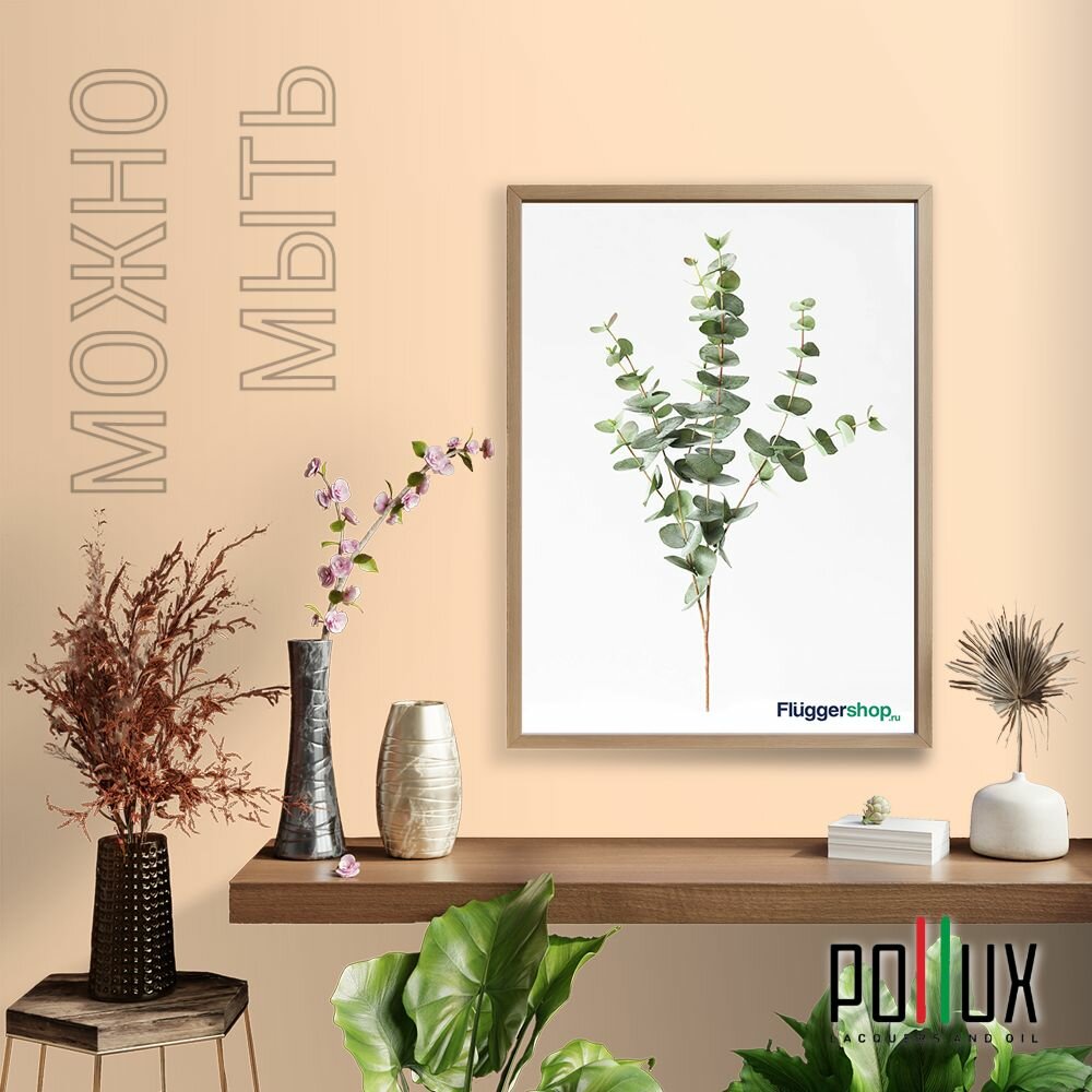 Краска моющаяся интерьерная для стен и потолков, Pollux INTERIOR без запаха, быстросохнущая, акриловая, матовое покрытие, цвет NCS S 4040-Y40R, 1л.