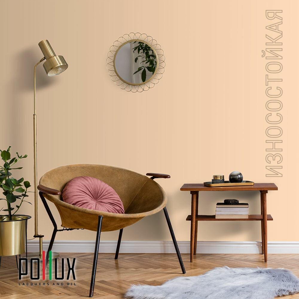 Краска моющаяся интерьерная для стен и потолков, Pollux INTERIOR без запаха, быстросохнущая, акриловая, матовое покрытие, цвет NCS S 0570-Y40R, 1л.