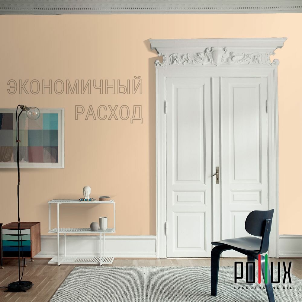 Краска моющаяся интерьерная для стен и потолков, Pollux INTERIOR без запаха, быстросохнущая, акриловая, матовое покрытие, цвет NCS S 0507-Y40R, 1л.