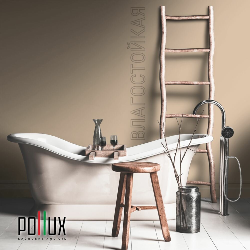 Краска моющаяся интерьерная для стен и потолков, Pollux INTERIOR без запаха, быстросохнущая, акриловая, матовое покрытие, цвет NCS S 7020-Y40R, 1л.