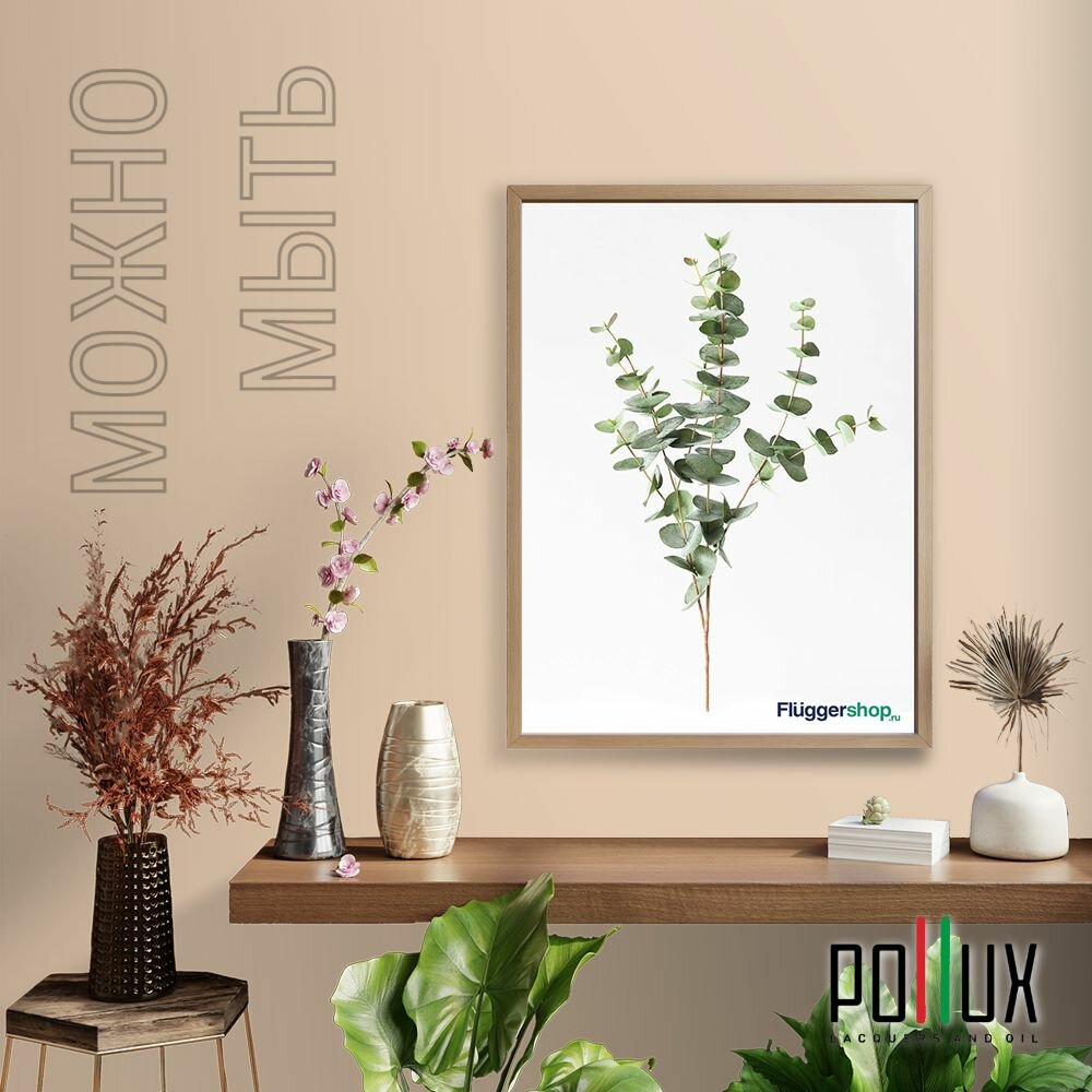 Краска моющаяся интерьерная для стен и потолков, Pollux INTERIOR без запаха, быстросохнущая, акриловая, матовое покрытие, цвет NCS S 4030-Y40R, 1л.