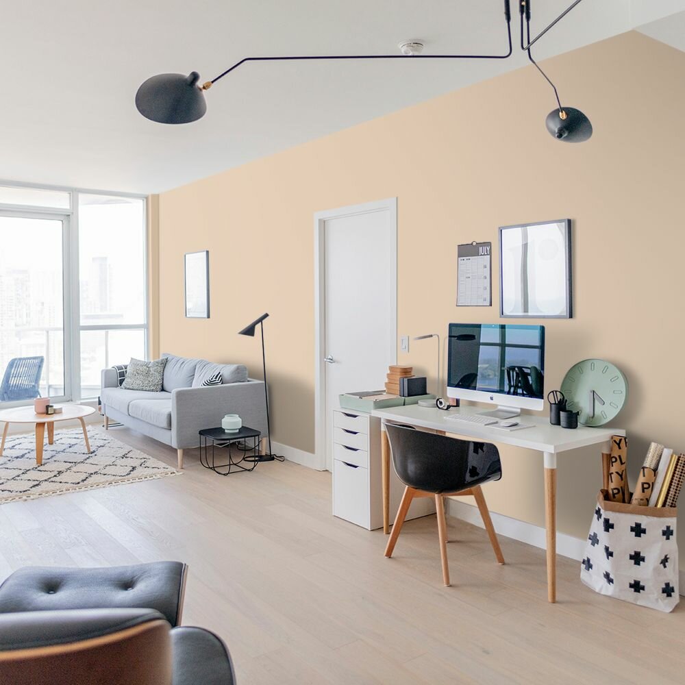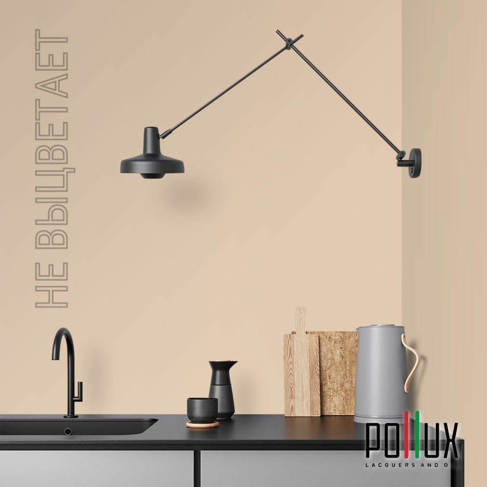 Краска моющаяся интерьерная для стен и потолков, Pollux INTERIOR без запаха, быстросохнущая, акриловая, матовое покрытие, цвет NCS S 1505-Y40R, 1л.