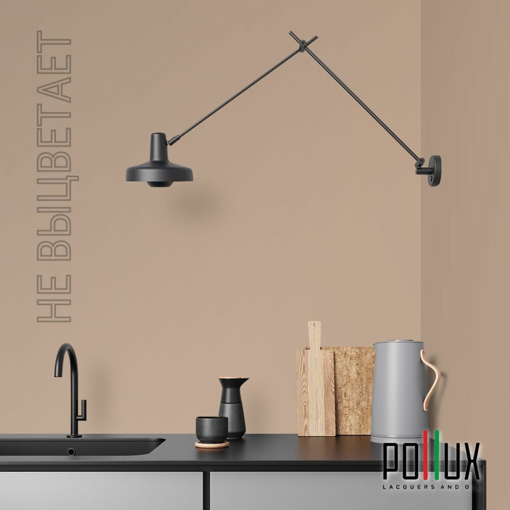 Краска моющаяся интерьерная для стен и потолков, Pollux INTERIOR без запаха, быстросохнущая, акриловая, матовое покрытие, цвет NCS S 7020-Y40R, 1л.