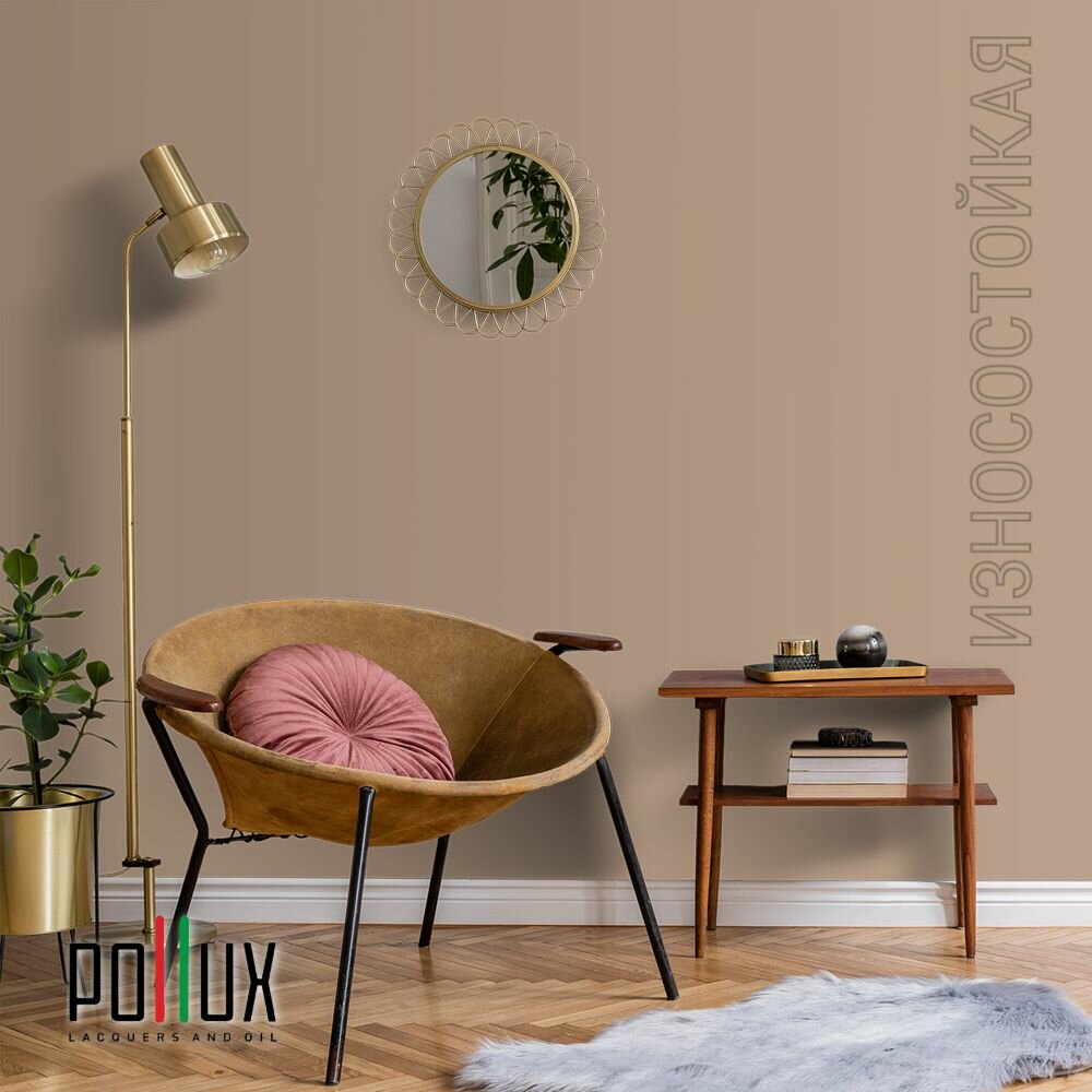 Краска моющаяся интерьерная для стен и потолков, Pollux INTERIOR без запаха, быстросохнущая, акриловая, матовое покрытие, цвет NCS S 4040-Y40R, 1л.