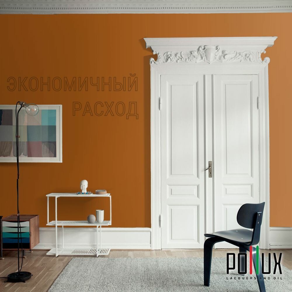 Краска моющаяся интерьерная для стен и потолков, Pollux INTERIOR без запаха, быстросохнущая, акриловая, матовое покрытие, цвет NCS S 3030-Y70R, 1л.