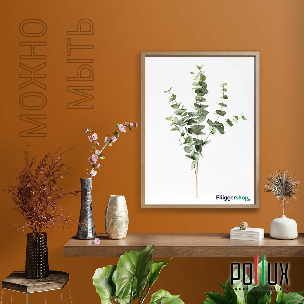 Краска моющаяся интерьерная для стен и потолков, Pollux INTERIOR без запаха, быстросохнущая, акриловая, матовое покрытие, цвет NCS S 5040-Y40R, 1л.