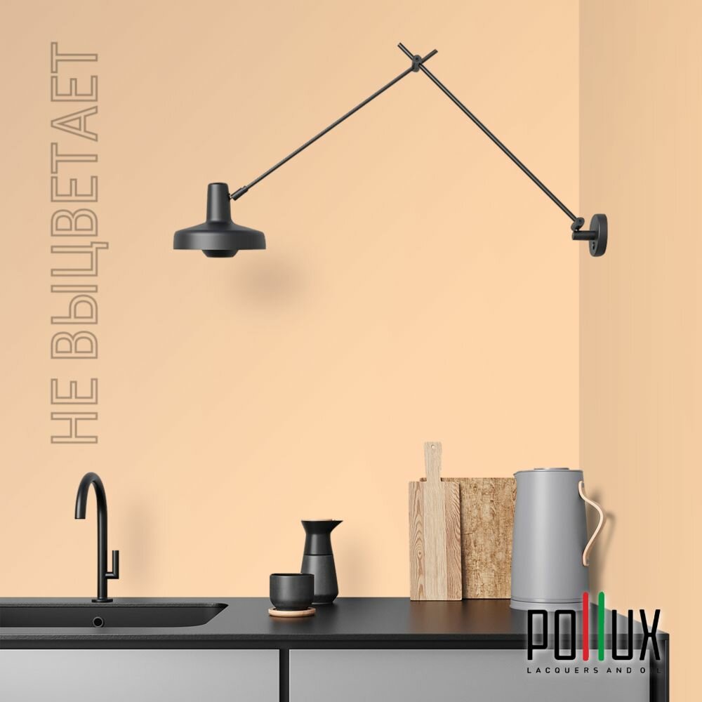 Краска моющаяся интерьерная для стен и потолков, Pollux INTERIOR без запаха, быстросохнущая, акриловая, матовое покрытие, цвет NCS S 5020-Y40R, 1л.