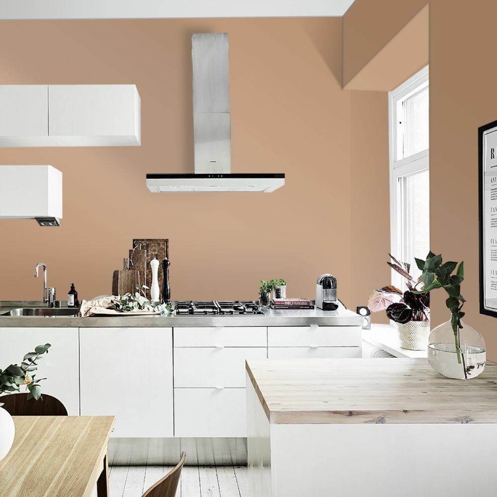 Краска моющаяся интерьерная для стен и потолков, Pollux INTERIOR без запаха, быстросохнущая, акриловая, матовое покрытие, цвет NCS S 0585-Y40R, 1л.