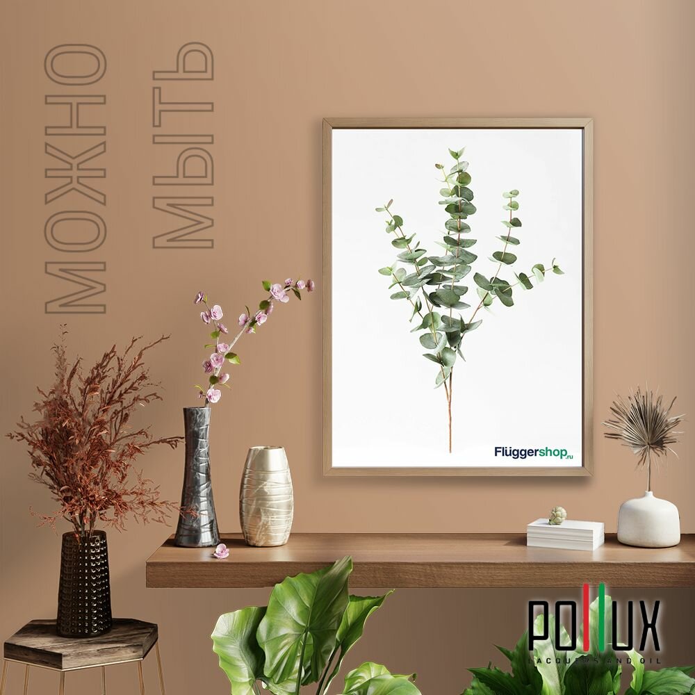 Краска моющаяся интерьерная для стен и потолков, Pollux INTERIOR без запаха, быстросохнущая, акриловая, матовое покрытие, цвет NCS S 4050-Y40R, 1л.