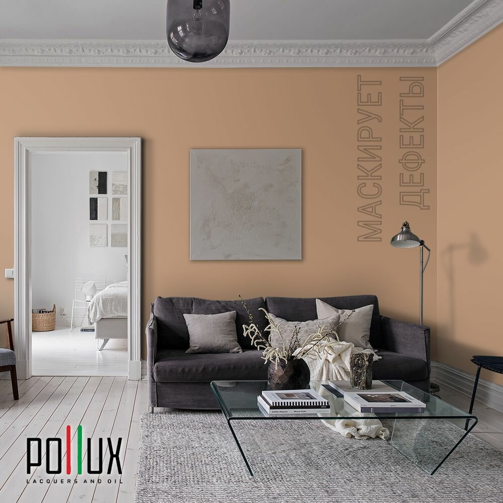 Краска моющаяся интерьерная для стен и потолков, Pollux INTERIOR без запаха, быстросохнущая, акриловая, матовое покрытие, цвет NCS S 3030-Y40R, 1л.