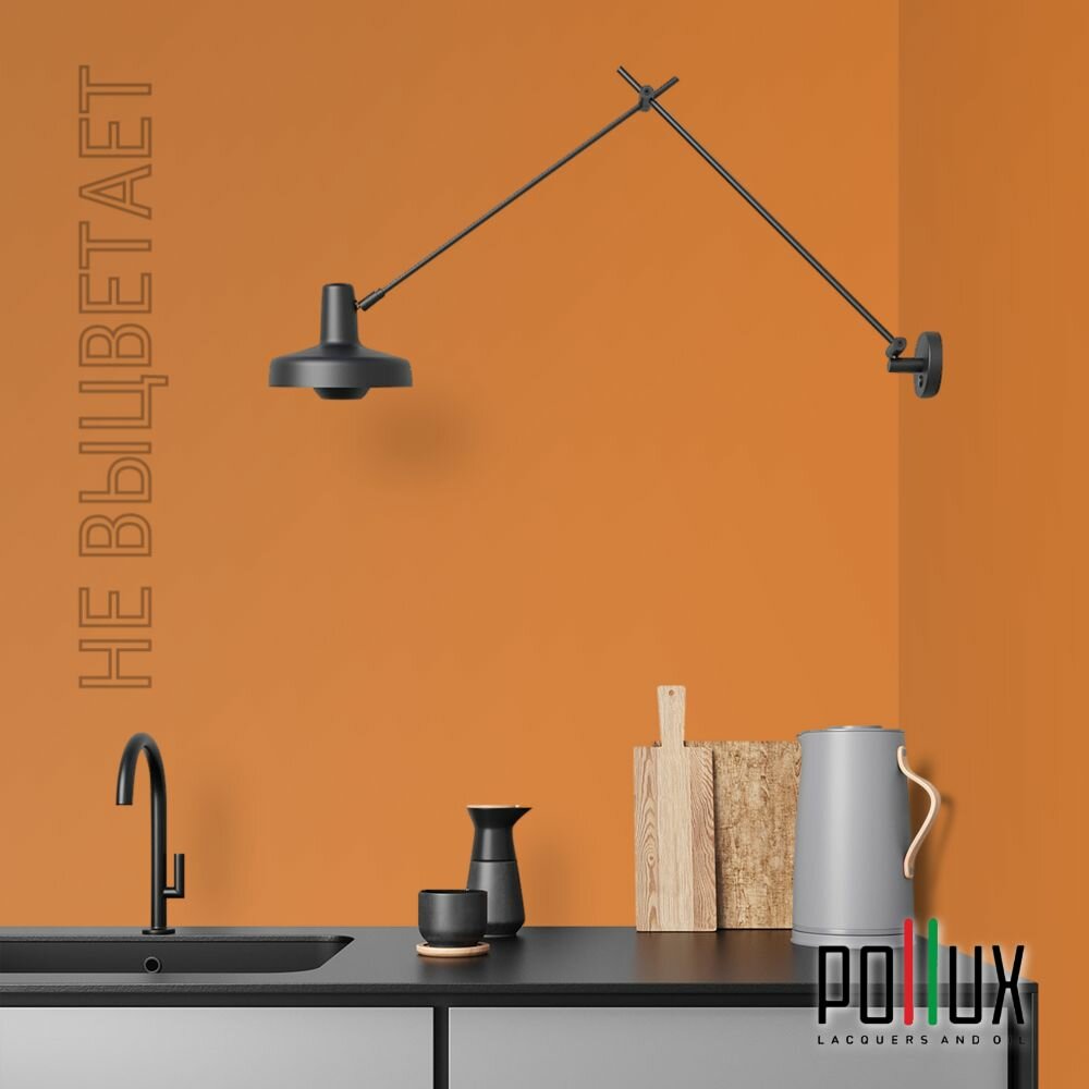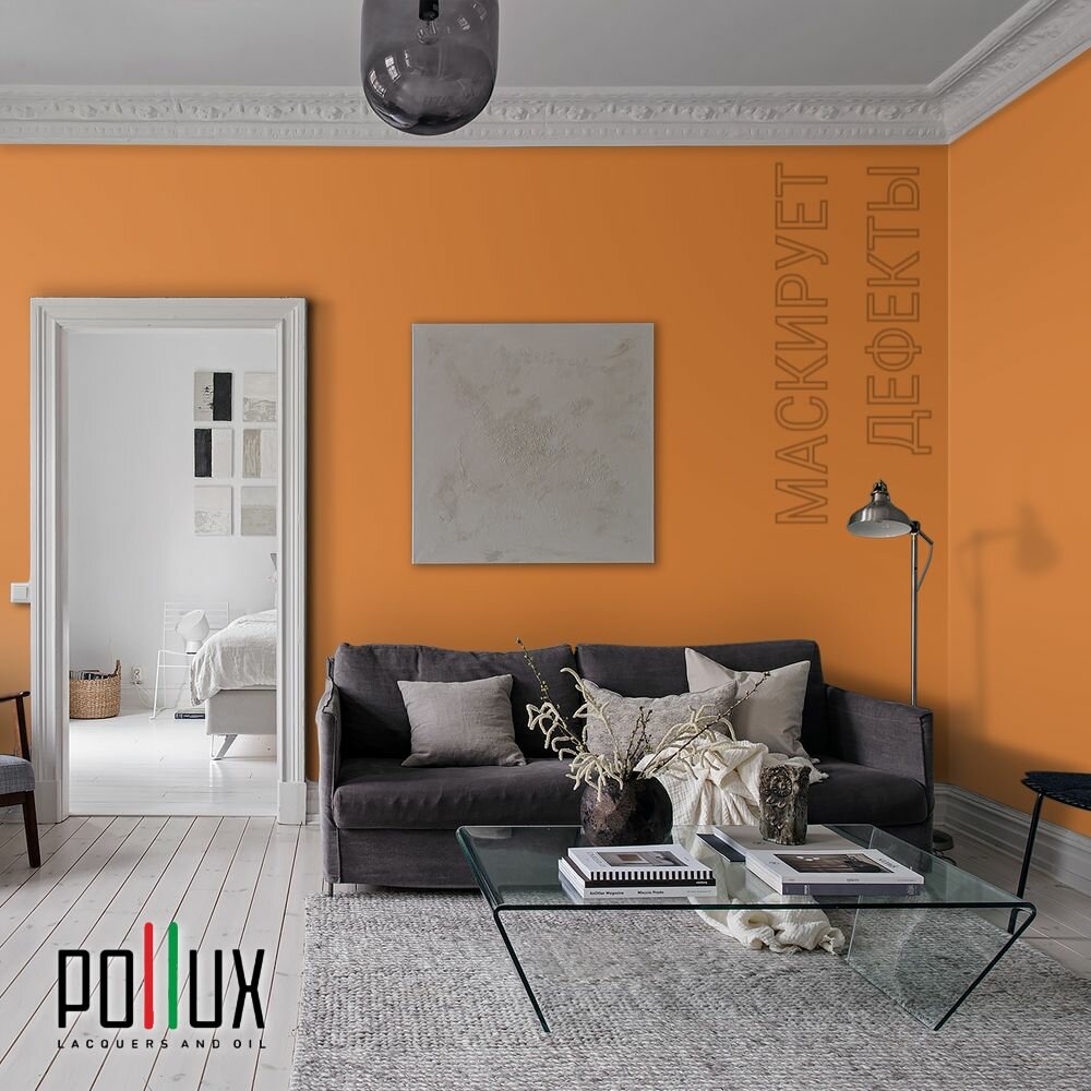Краска моющаяся интерьерная для стен и потолков, Pollux INTERIOR без запаха, быстросохнущая, акриловая, матовое покрытие, цвет NCS S 3030-Y40R, 1л.