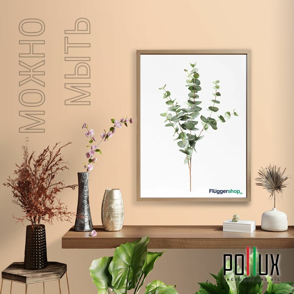 Краска моющаяся интерьерная для стен и потолков, Pollux INTERIOR без запаха, быстросохнущая, акриловая, матовое покрытие, цвет NCS S 5020-Y40R, 1л.
