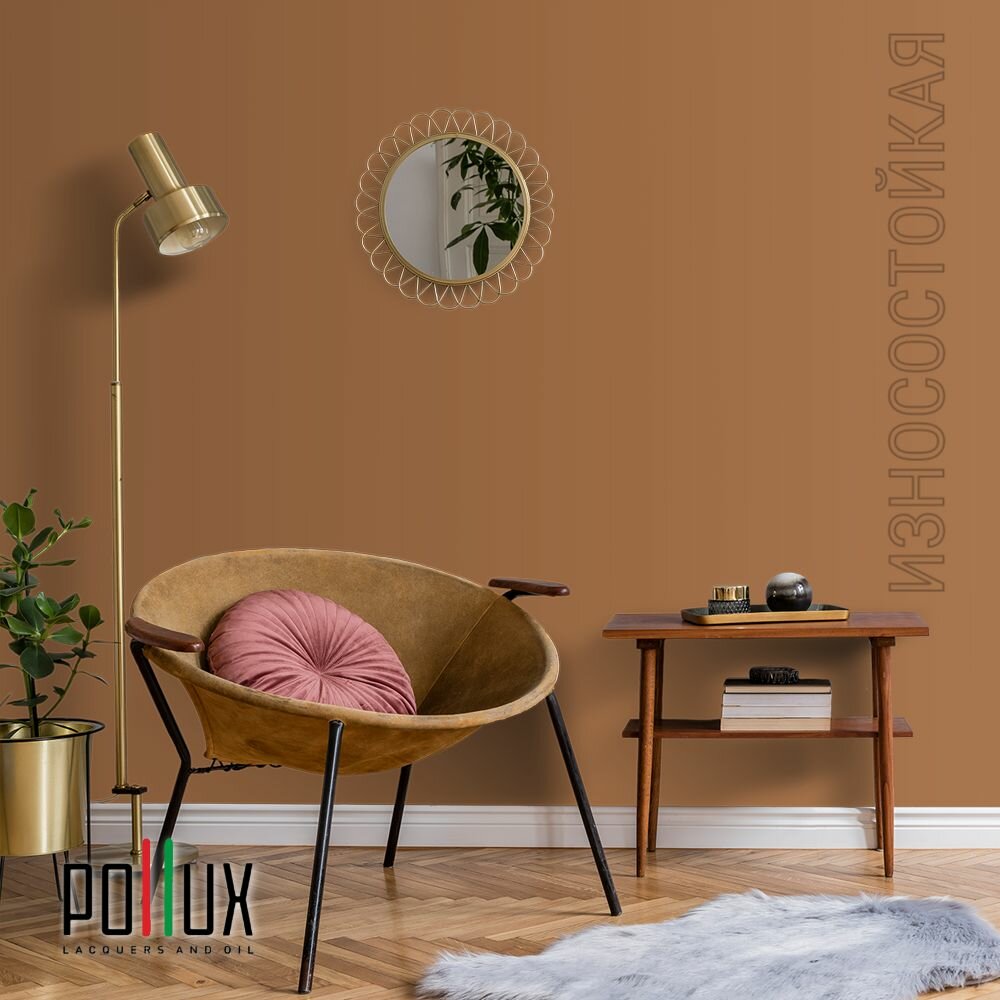 Краска моющаяся интерьерная для стен и потолков, Pollux INTERIOR без запаха, быстросохнущая, акриловая, матовое покрытие, цвет NCS S 3030-Y40R, 1л.