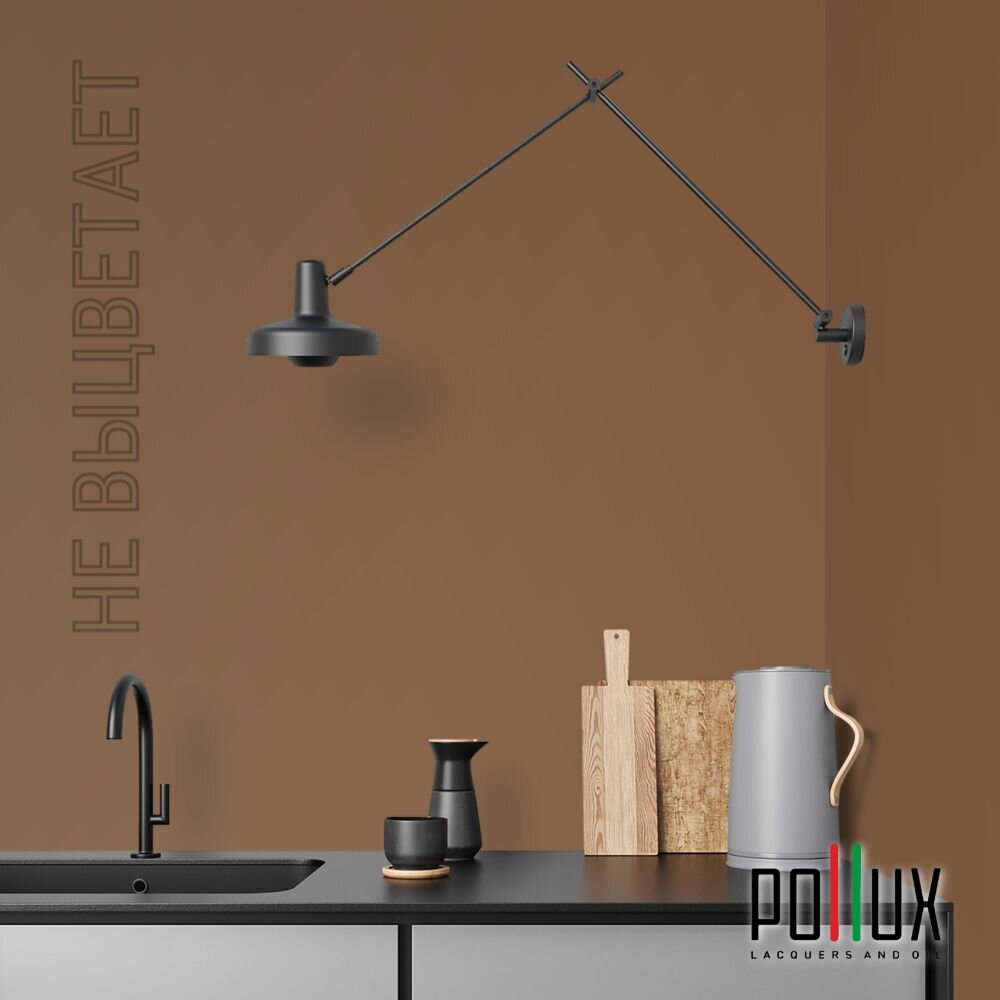 Краска моющаяся интерьерная для стен и потолков, Pollux INTERIOR без запаха, быстросохнущая, акриловая, матовое покрытие, цвет NCS S 7020-Y40R, 1л.
