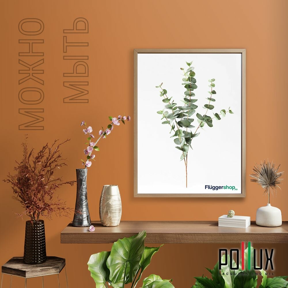 Краска моющаяся интерьерная для стен и потолков, Pollux INTERIOR без запаха, быстросохнущая, акриловая, матовое покрытие, цвет NCS S 3060-Y40R, 1л.
