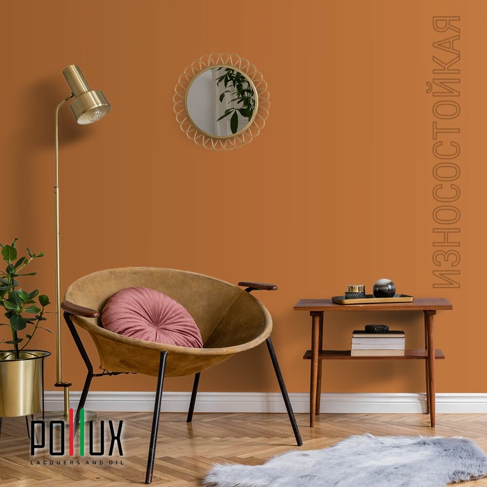 Краска моющаяся интерьерная для стен и потолков, Pollux INTERIOR без запаха, быстросохнущая, акриловая, матовое покрытие, цвет NCS S 3030-Y40R, 1л.