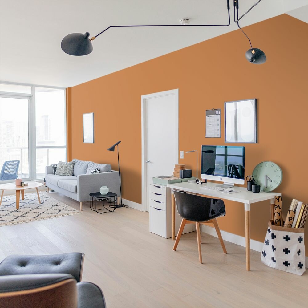 Краска моющаяся интерьерная для стен и потолков, Pollux INTERIOR без запаха, быстросохнущая, акриловая, матовое покрытие, цвет NCS S 0585-Y40R, 1л.