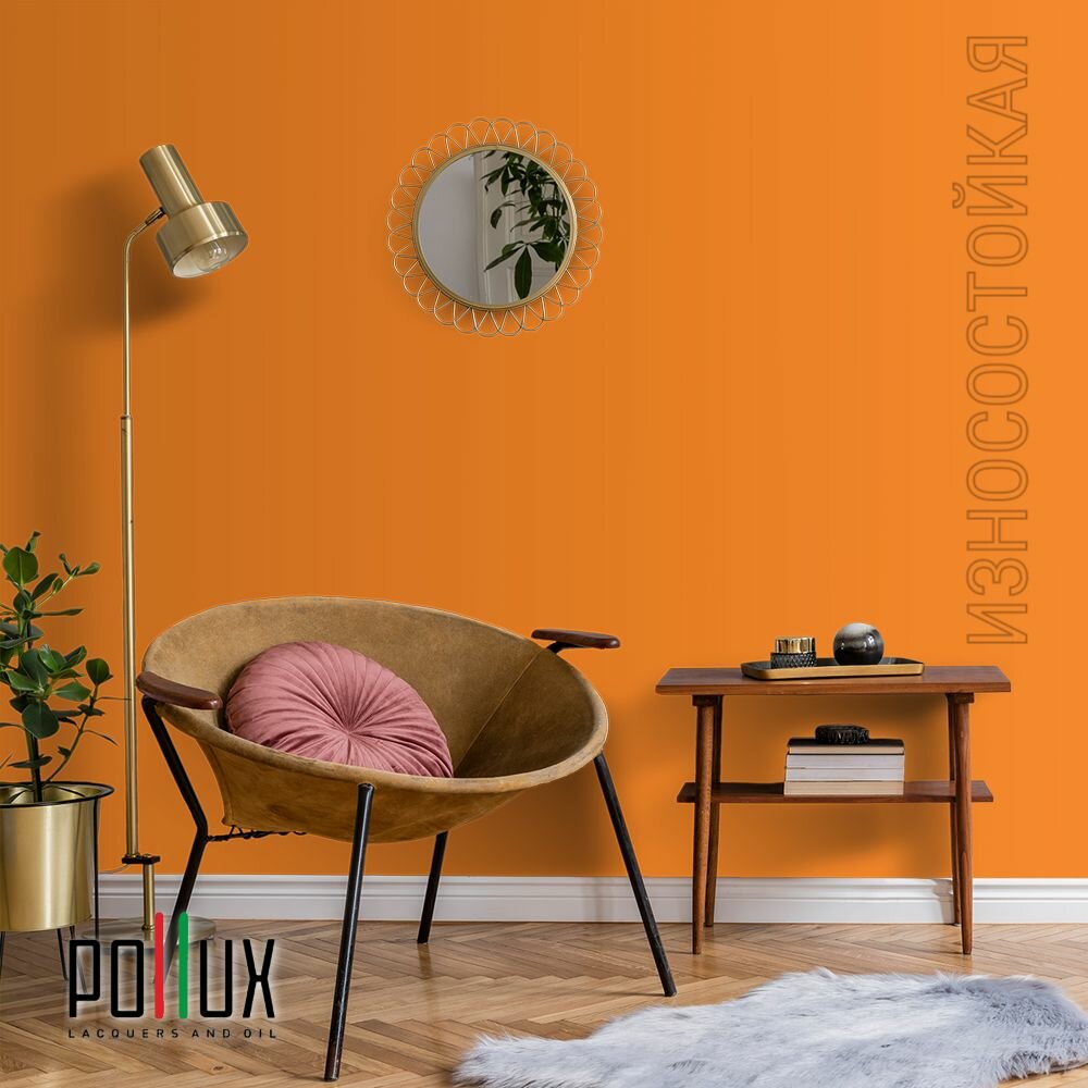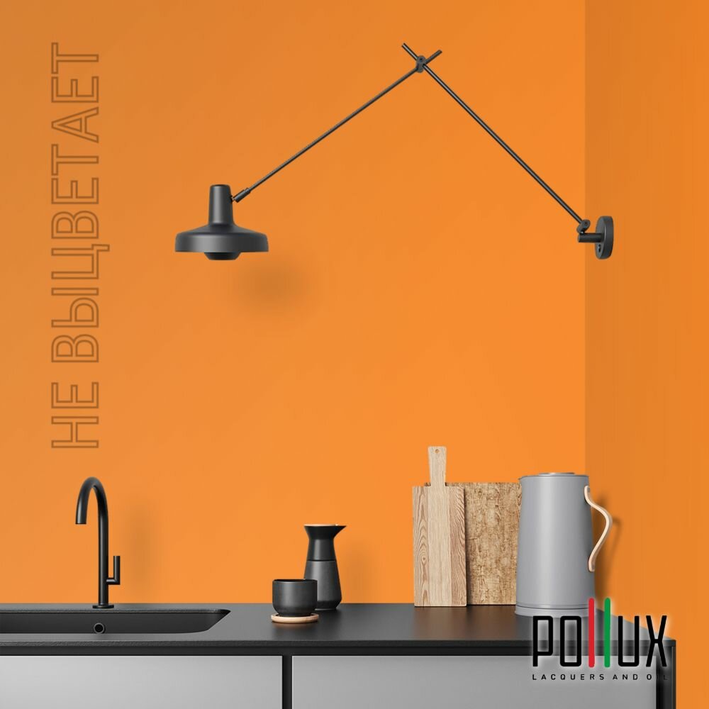 Краска моющаяся интерьерная для стен и потолков, Pollux INTERIOR без запаха, быстросохнущая, акриловая, матовое покрытие, цвет NCS S 3030-Y40R, 1л.
