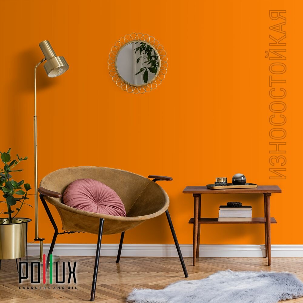 Краска моющаяся интерьерная для стен и потолков, Pollux INTERIOR без запаха, быстросохнущая, акриловая, матовое покрытие, цвет NCS S 3060-Y40R, 1л.