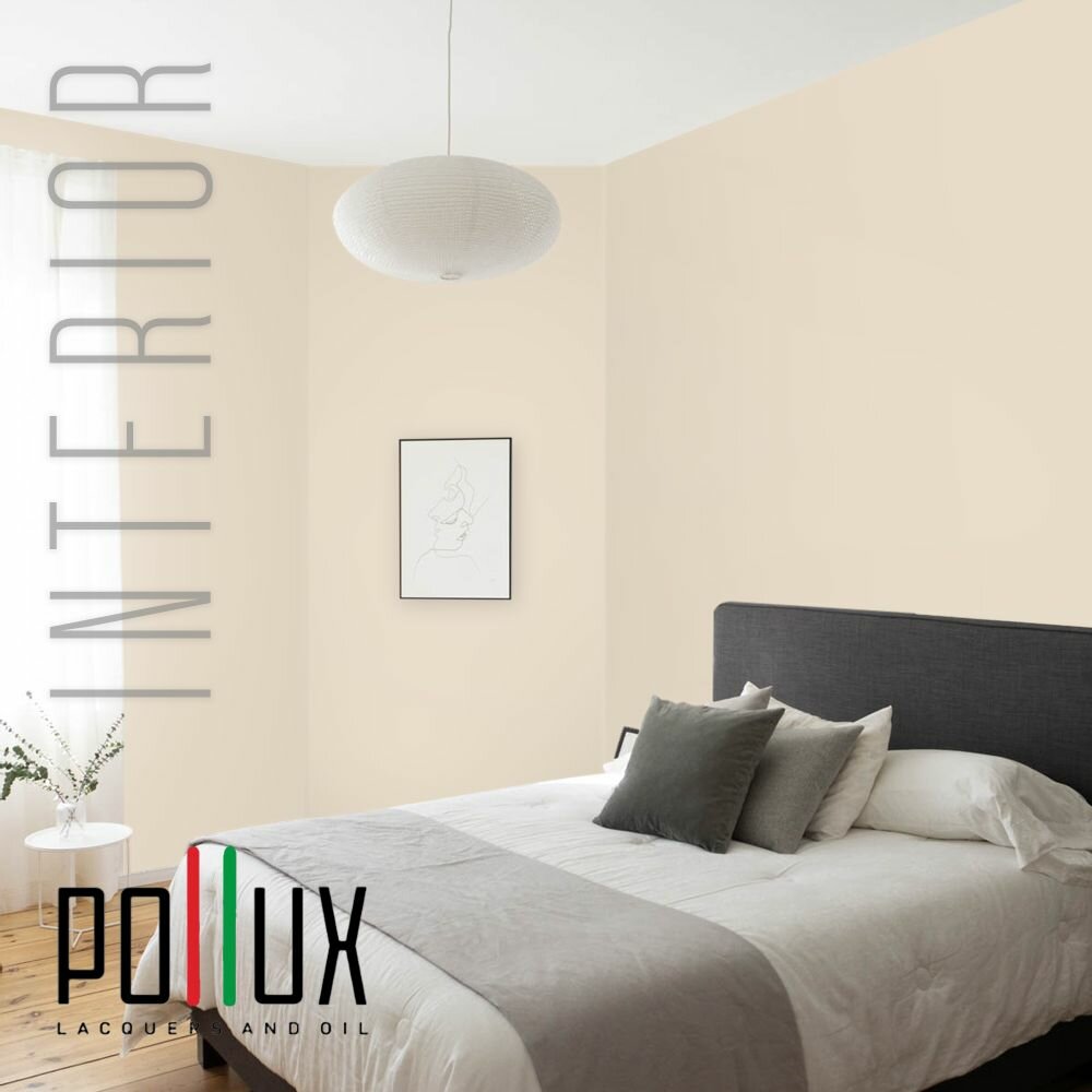 Краска моющаяся интерьерная для стен и потолков, Pollux INTERIOR без запаха, быстросохнущая, акриловая, матовое покрытие, цвет NCS S 1015-Y40R, 1л.
