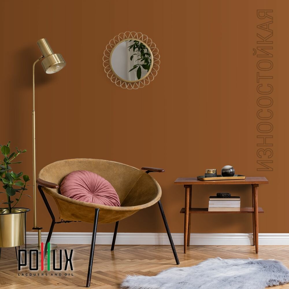 Краска моющаяся интерьерная для стен и потолков, Pollux INTERIOR без запаха, быстросохнущая, акриловая, матовое покрытие, цвет NCS S 5040-Y40R, 1л.