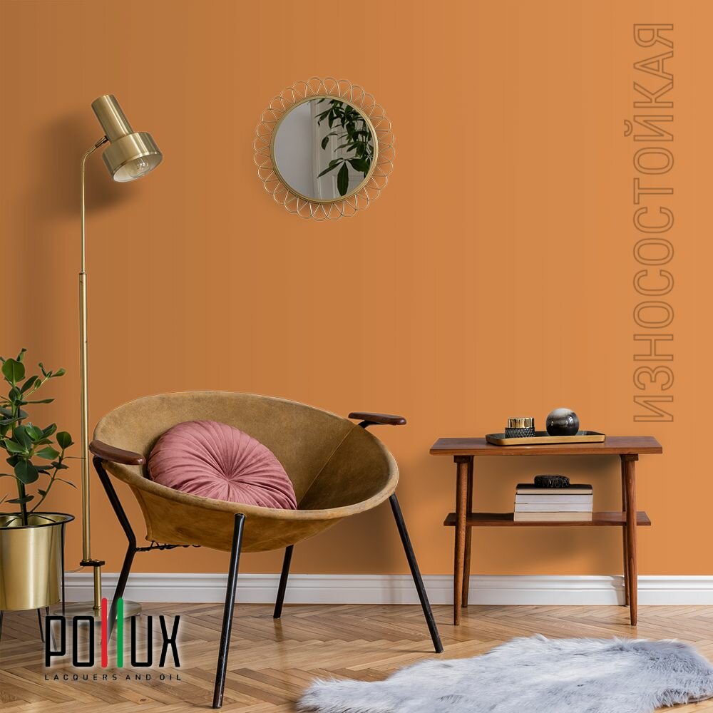 Краска моющаяся интерьерная для стен и потолков, Pollux INTERIOR без запаха, быстросохнущая, акриловая, матовое покрытие, цвет NCS S 3030-Y40R, 1л.
