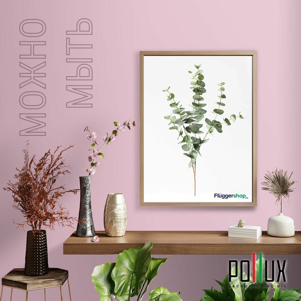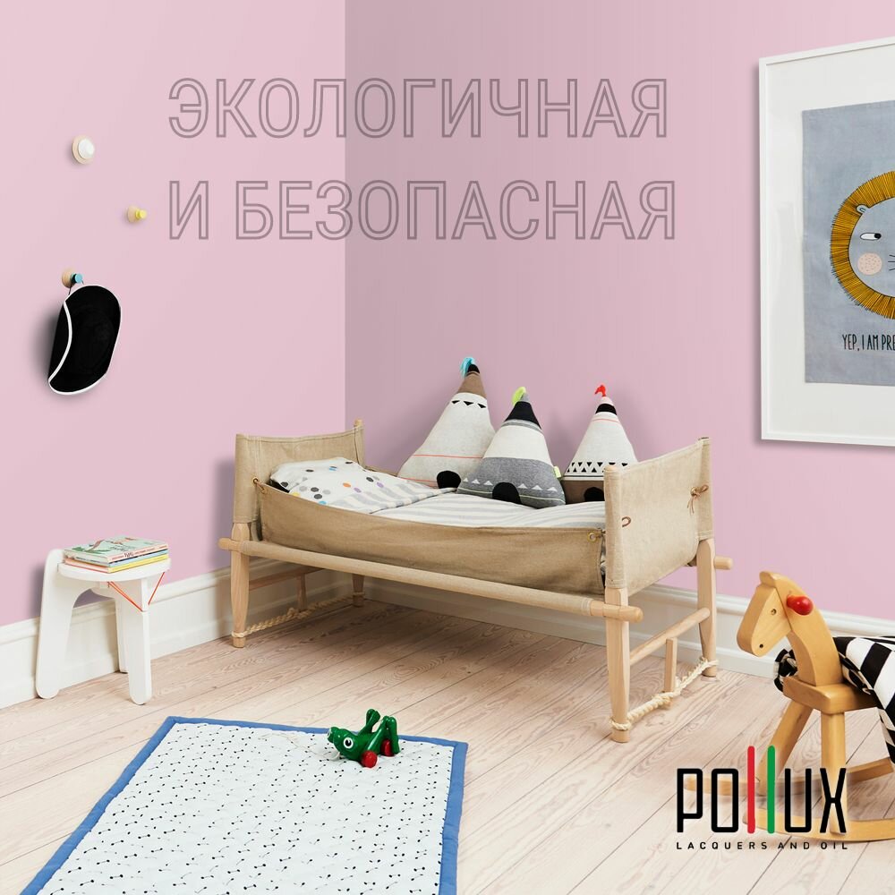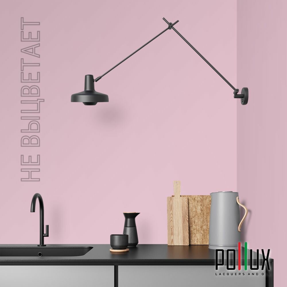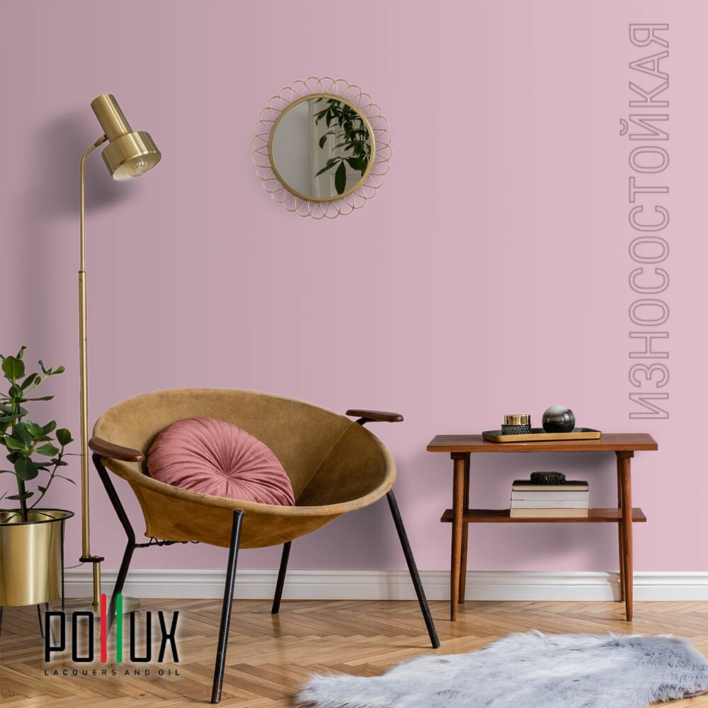 Краска моющаяся интерьерная для стен и потолков, Pollux INTERIOR без запаха, быстросохнущая, акриловая, матовое покрытие, цвет NCS S 0907-R30B, 1л.
