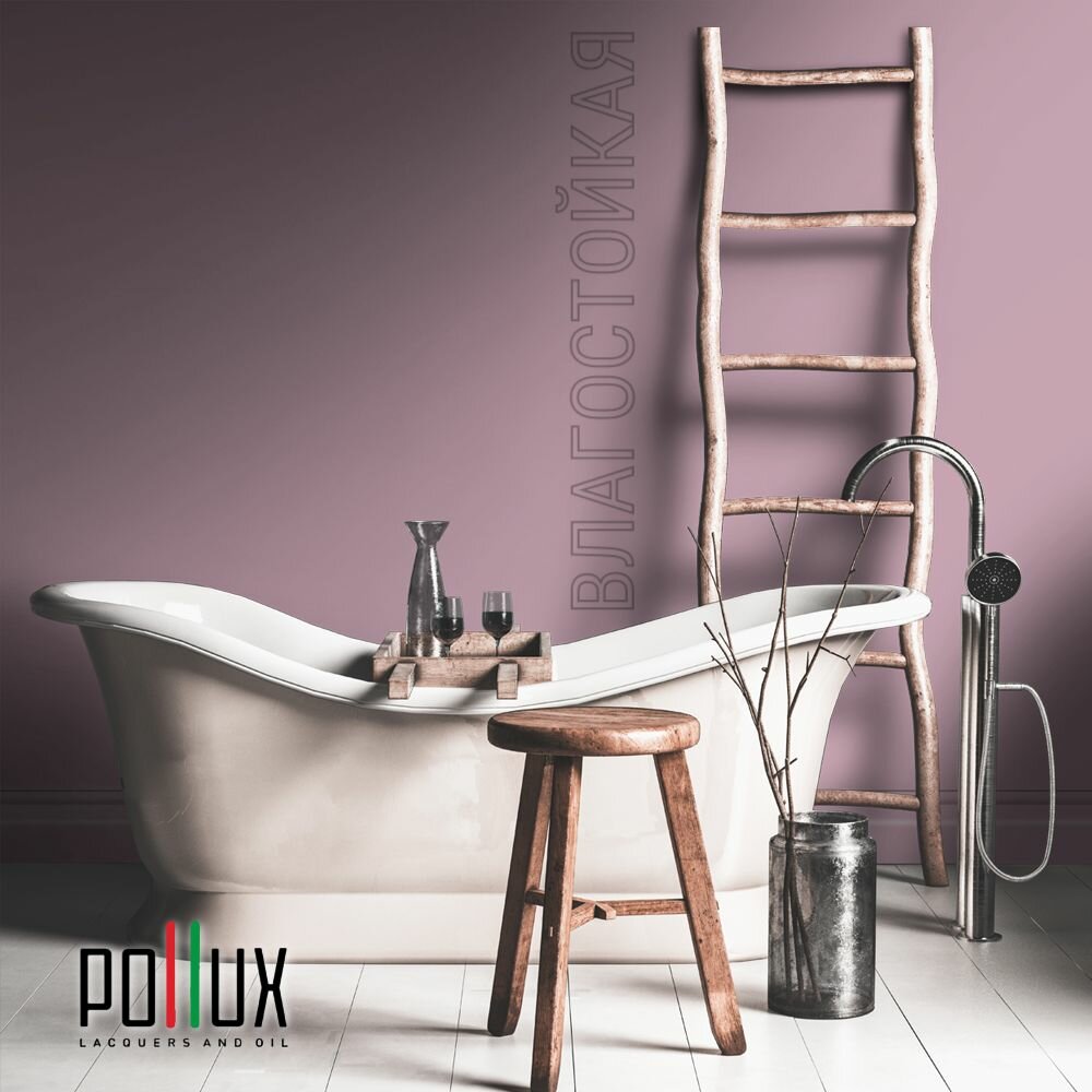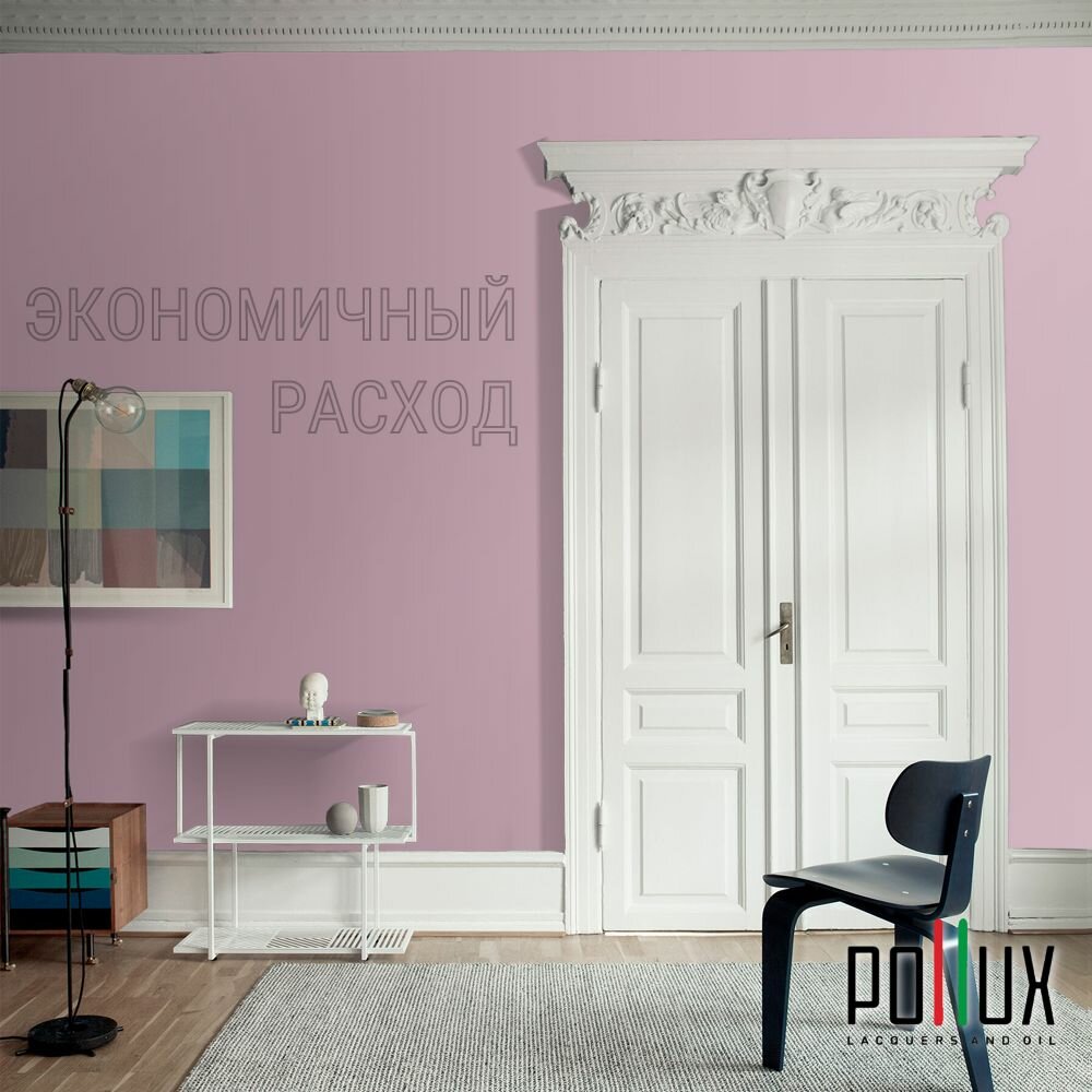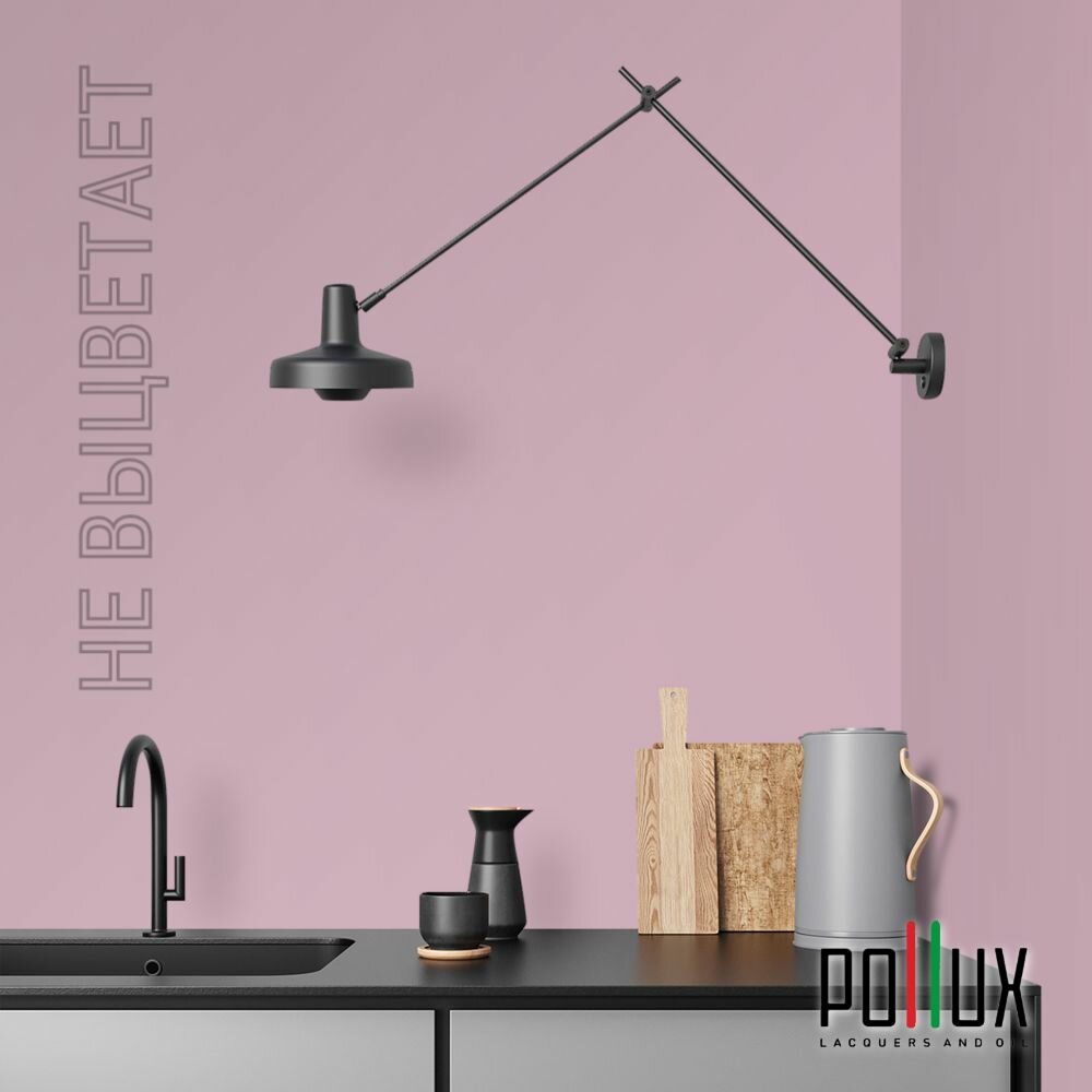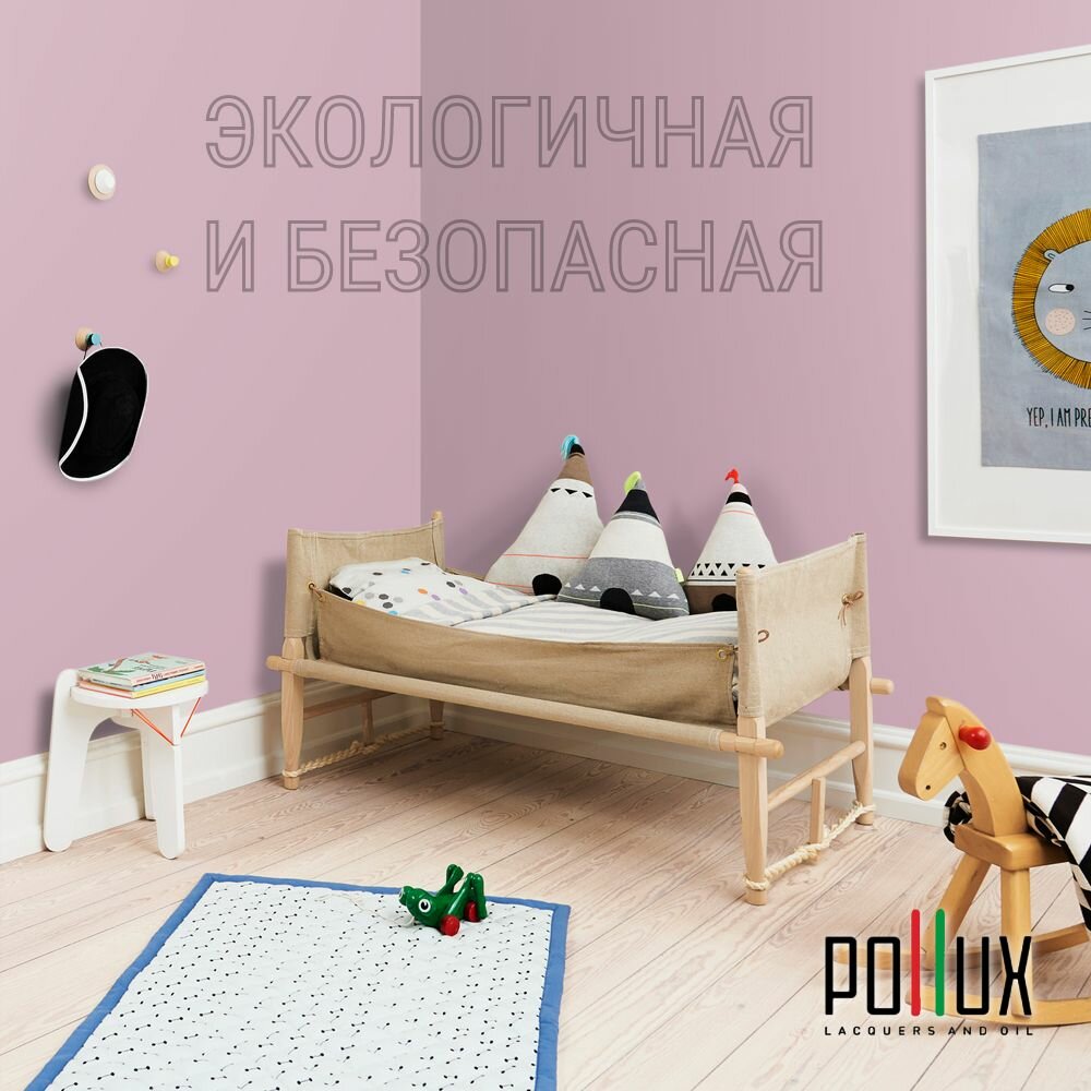 Краска моющаяся интерьерная для стен и потолков, Pollux INTERIOR без запаха, быстросохнущая, акриловая, матовое покрытие, цвет NCS S 0907-R30B, 1л.
