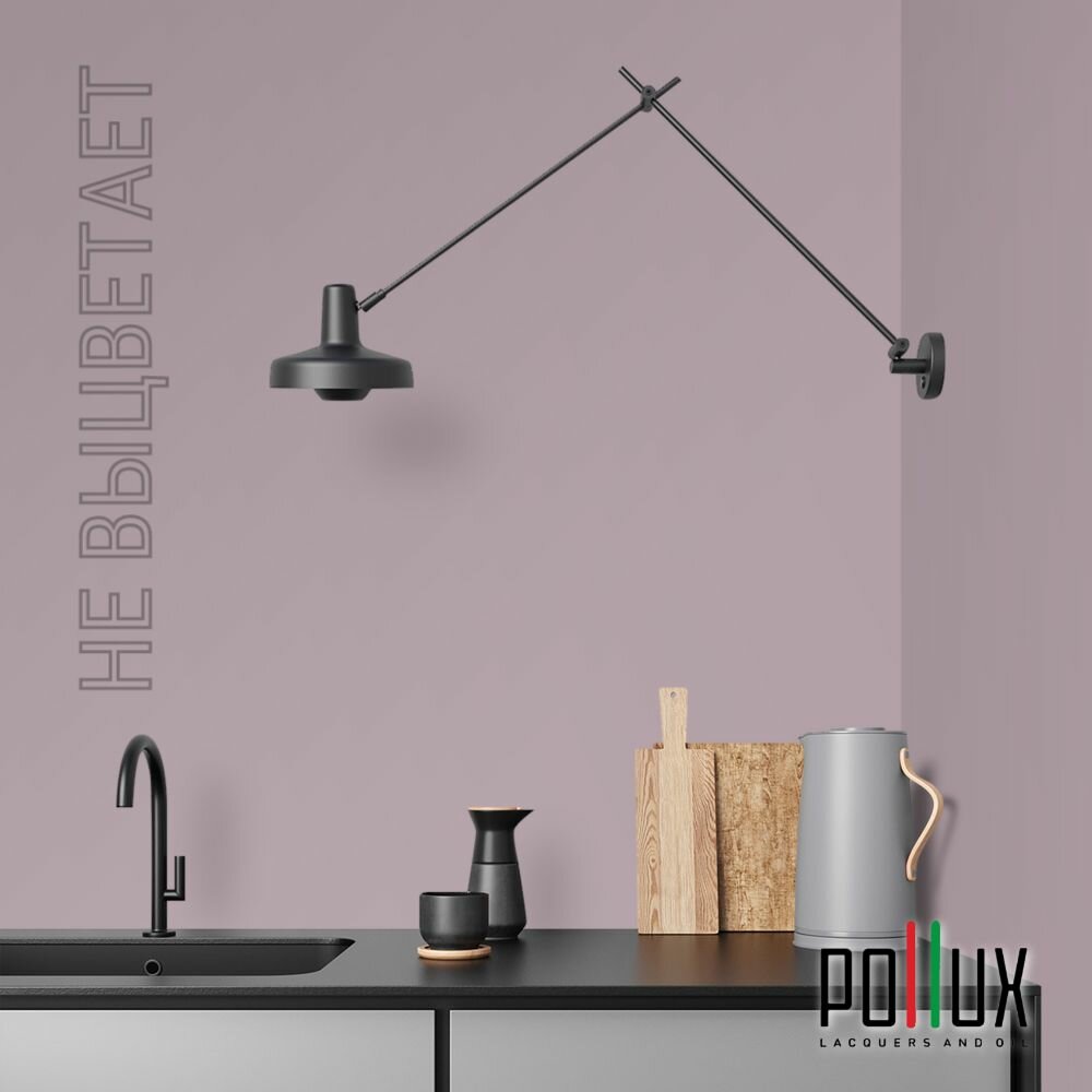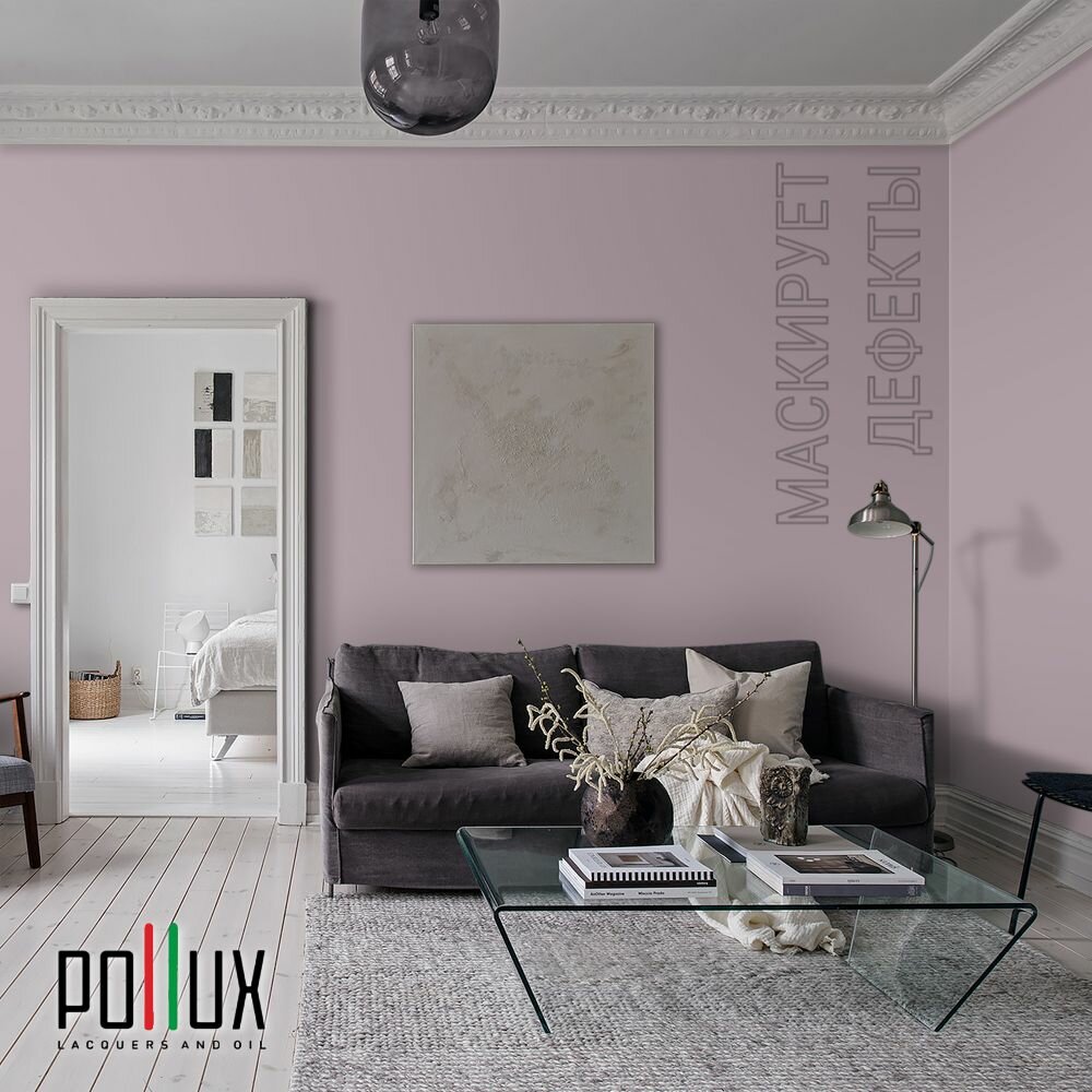 Краска моющаяся интерьерная для стен и потолков, Pollux INTERIOR без запаха, быстросохнущая, акриловая, матовое покрытие, цвет NCS S 0907-R30B, 1л.