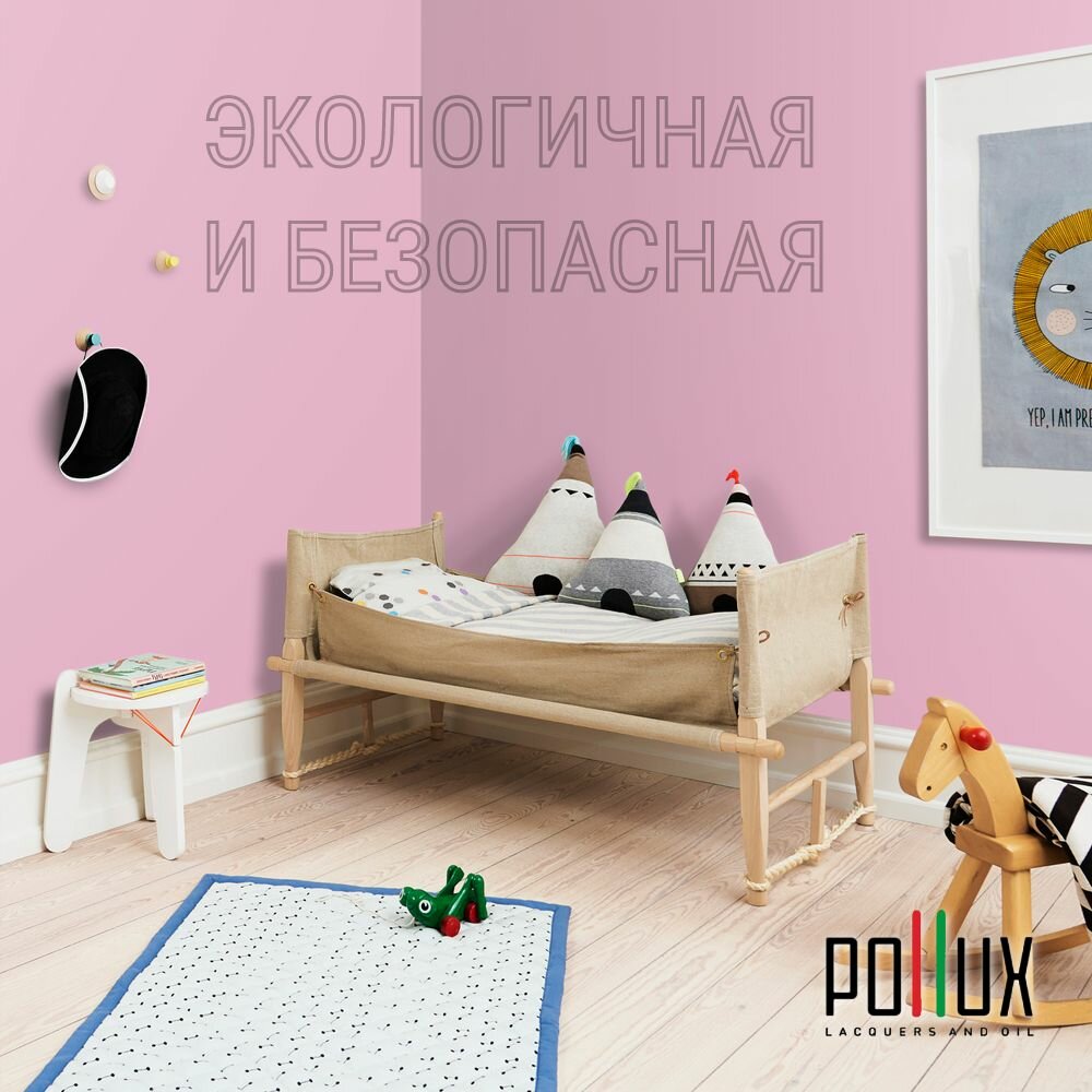 Краска моющаяся интерьерная для стен и потолков, Pollux INTERIOR без запаха, быстросохнущая, акриловая, матовое покрытие, цвет NCS S 0530-R30B, 1л.