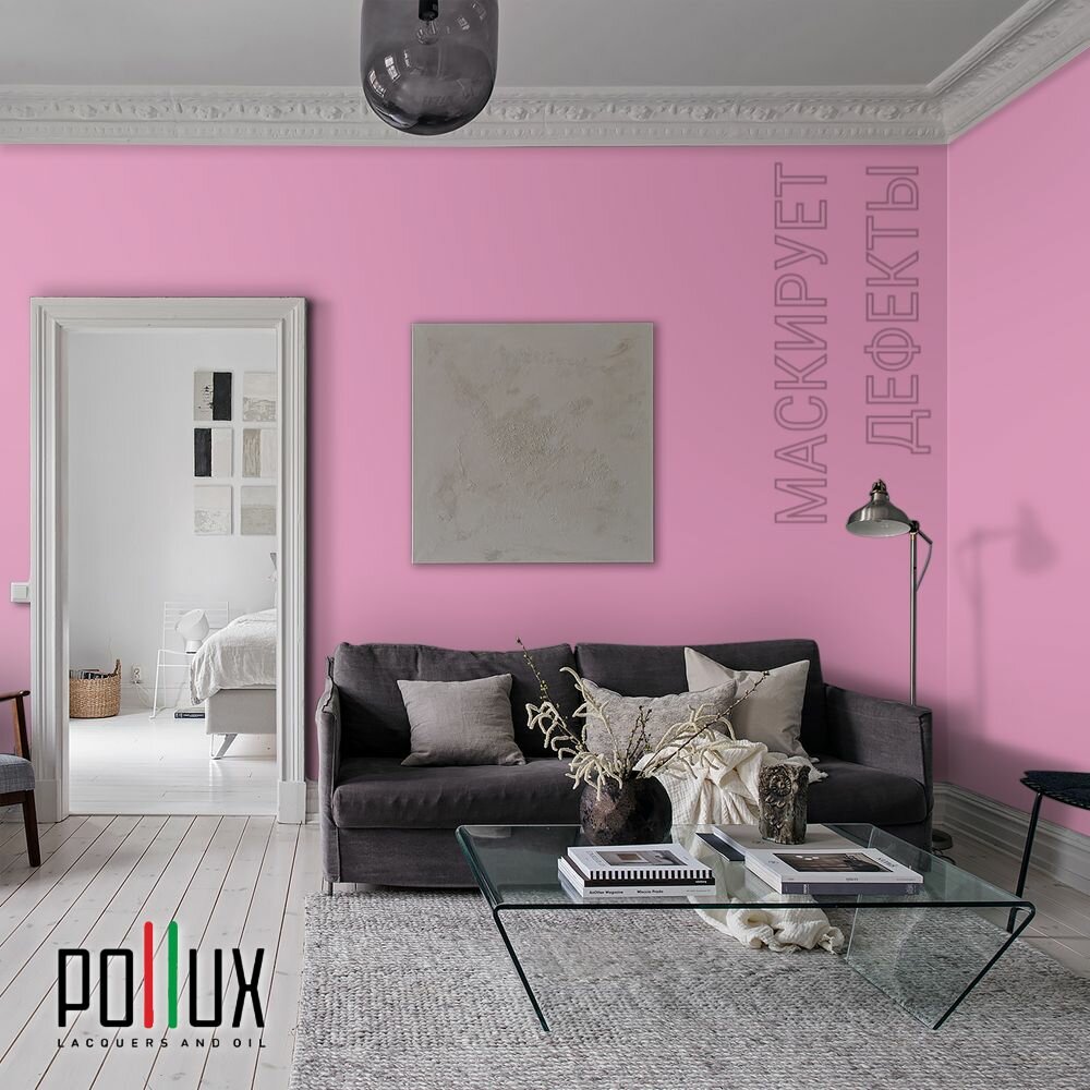 Краска моющаяся интерьерная для стен и потолков, Pollux INTERIOR без запаха, быстросохнущая, акриловая, матовое покрытие, цвет NCS S 0907-R30B, 1л.