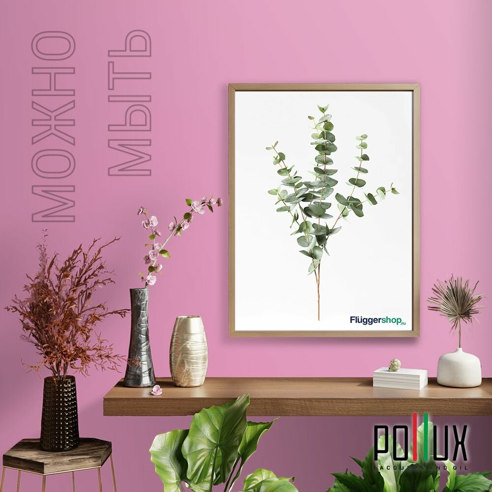 Краска моющаяся интерьерная для стен и потолков, Pollux INTERIOR без запаха, быстросохнущая, акриловая, матовое покрытие, цвет NCS S 0505-R30B, 1л.