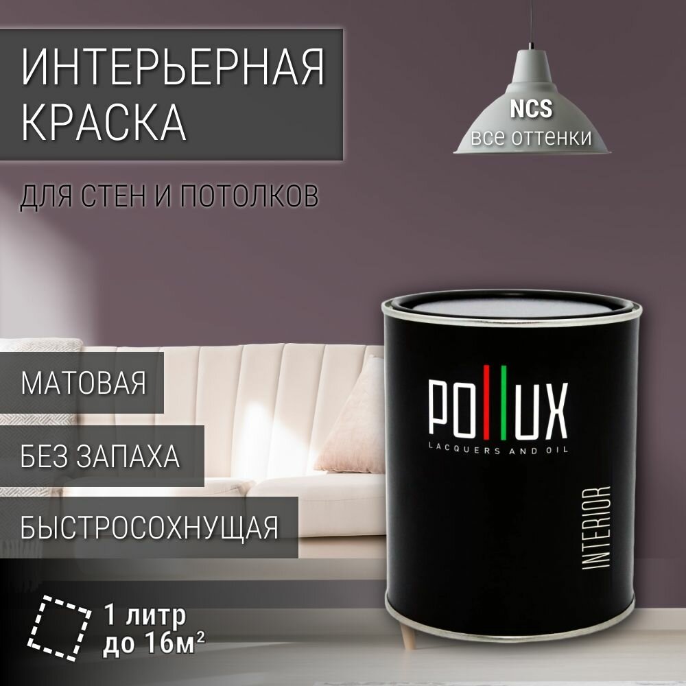 Краска моющаяся интерьерная для стен и потолков, Pollux INTERIOR без запаха, быстросохнущая, акриловая, матовое покрытие, цвет NCS S 2010-R30B, 1л.