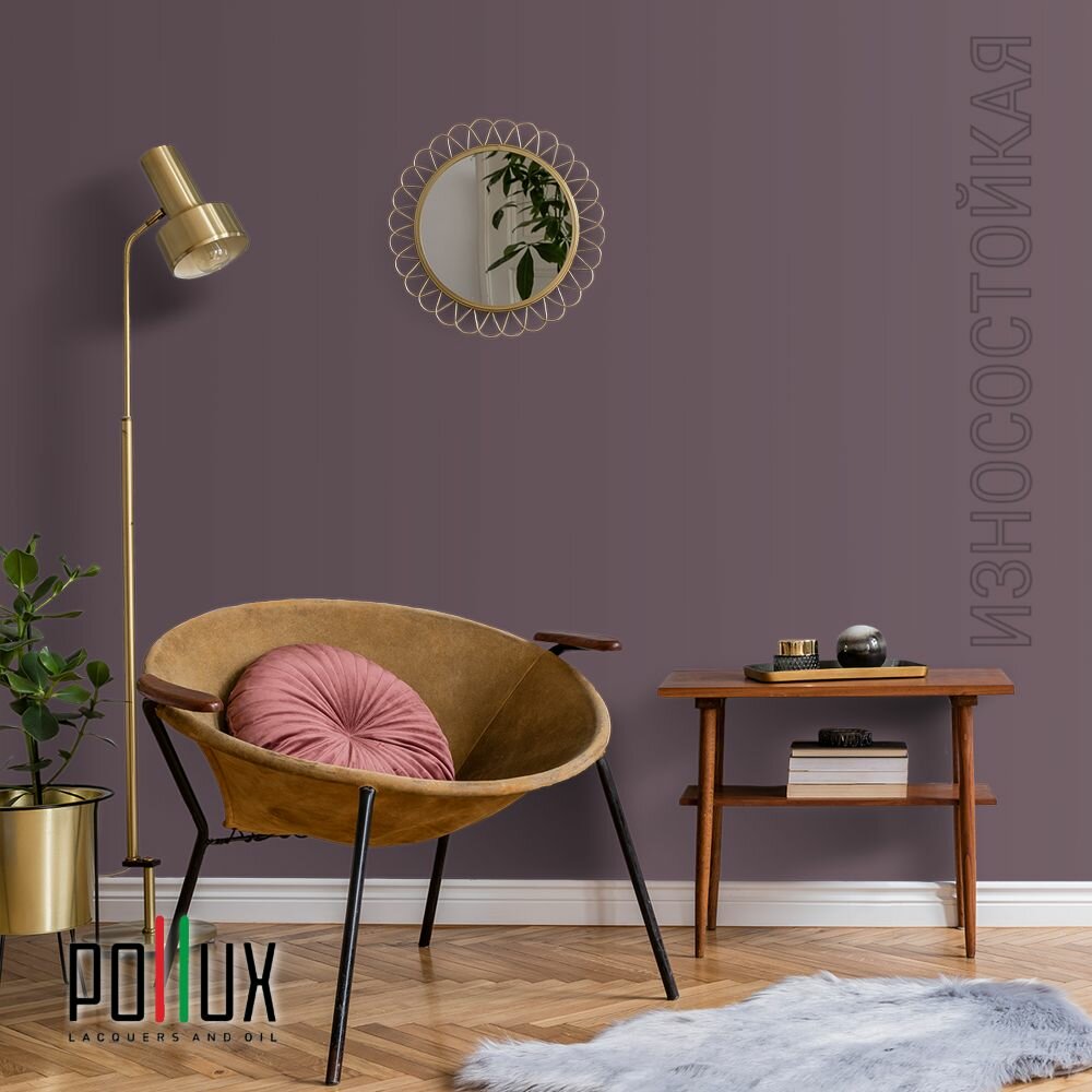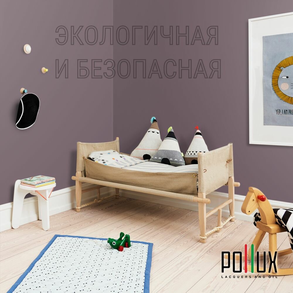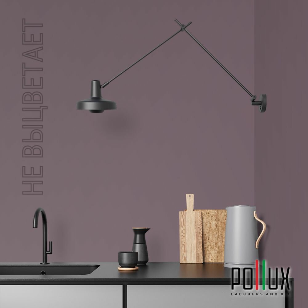 Краска моющаяся интерьерная для стен и потолков, Pollux INTERIOR без запаха, быстросохнущая, акриловая, матовое покрытие, цвет NCS S 0907-R30B, 1л.