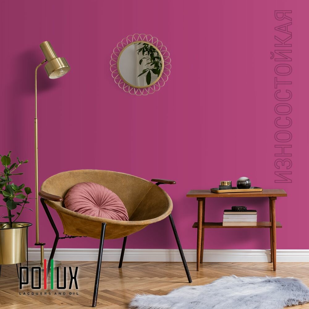 Краска моющаяся интерьерная для стен и потолков, Pollux INTERIOR без запаха, быстросохнущая, акриловая, матовое покрытие, цвет NCS S 1030-R30B, 1л.