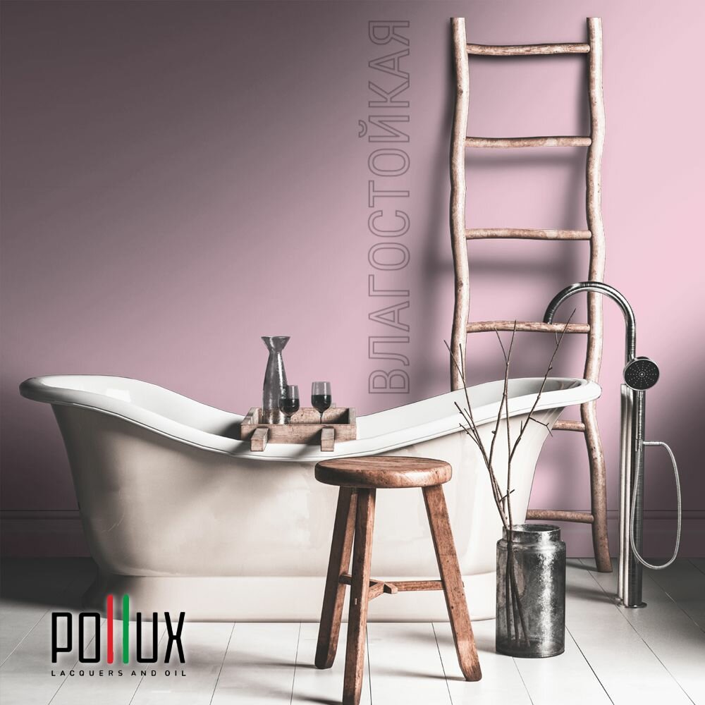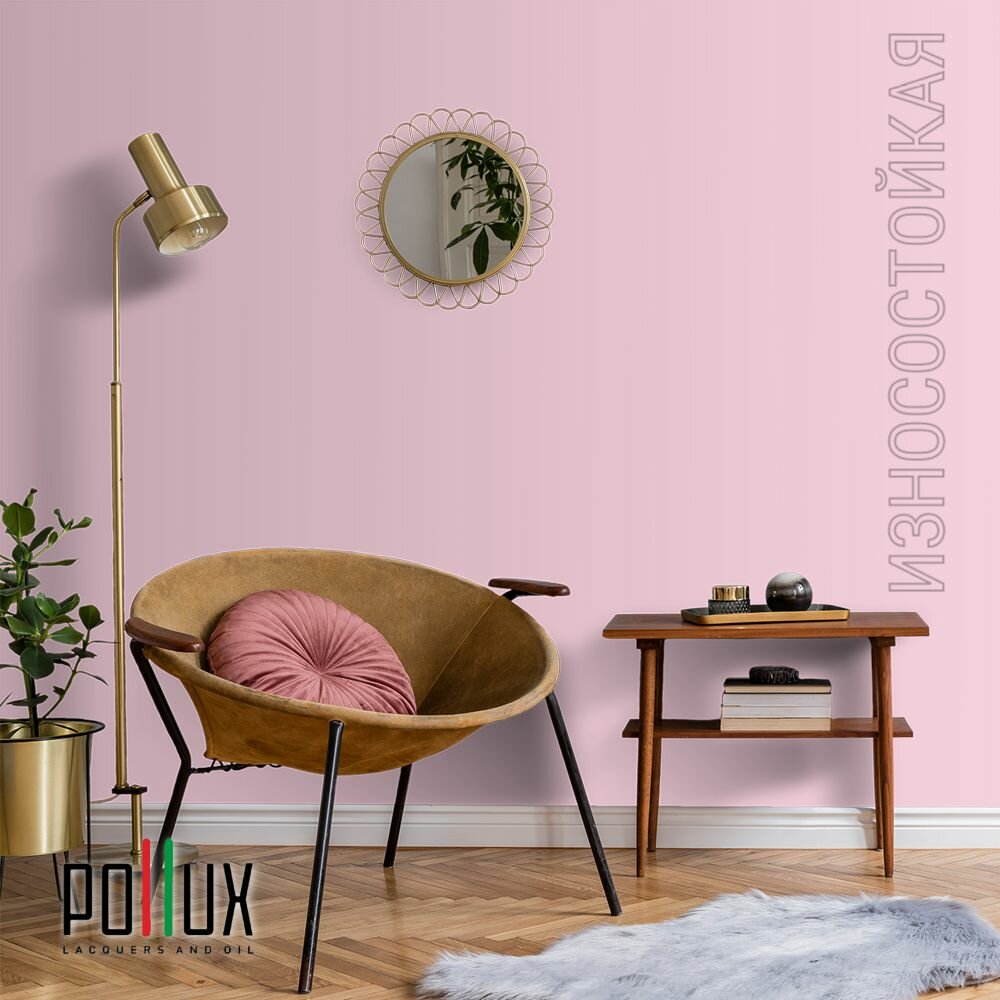 Краска моющаяся интерьерная для стен и потолков, Pollux INTERIOR без запаха, быстросохнущая, акриловая, матовое покрытие, цвет NCS S 0907-R30B, 1л.