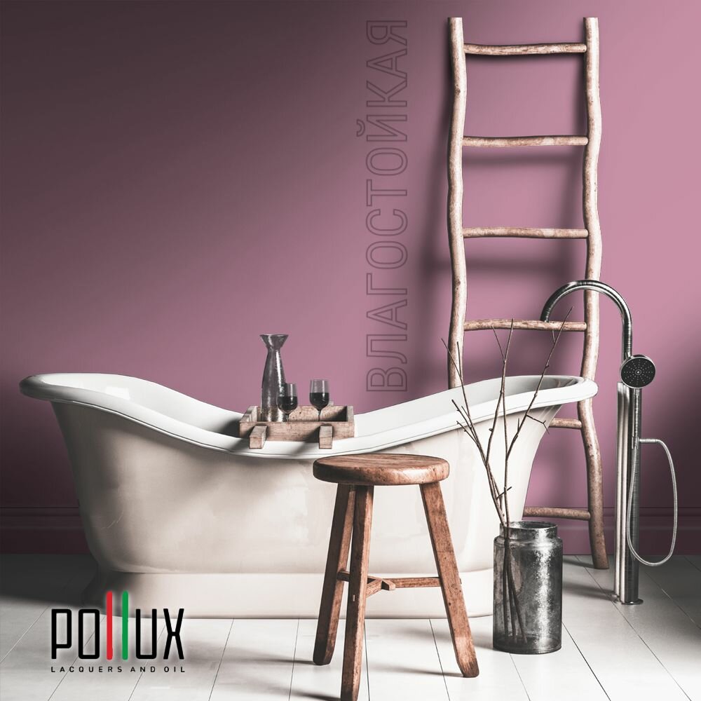 Краска моющаяся интерьерная для стен и потолков, Pollux INTERIOR без запаха, быстросохнущая, акриловая, матовое покрытие, цвет NCS S 0520-R30B, 1л.